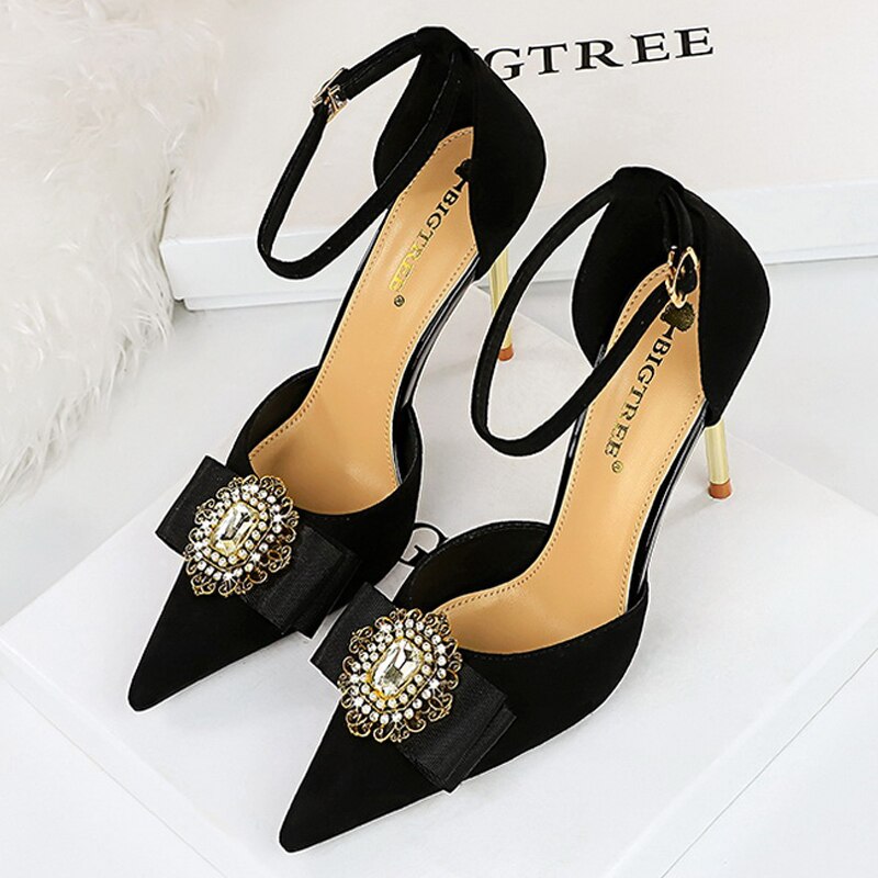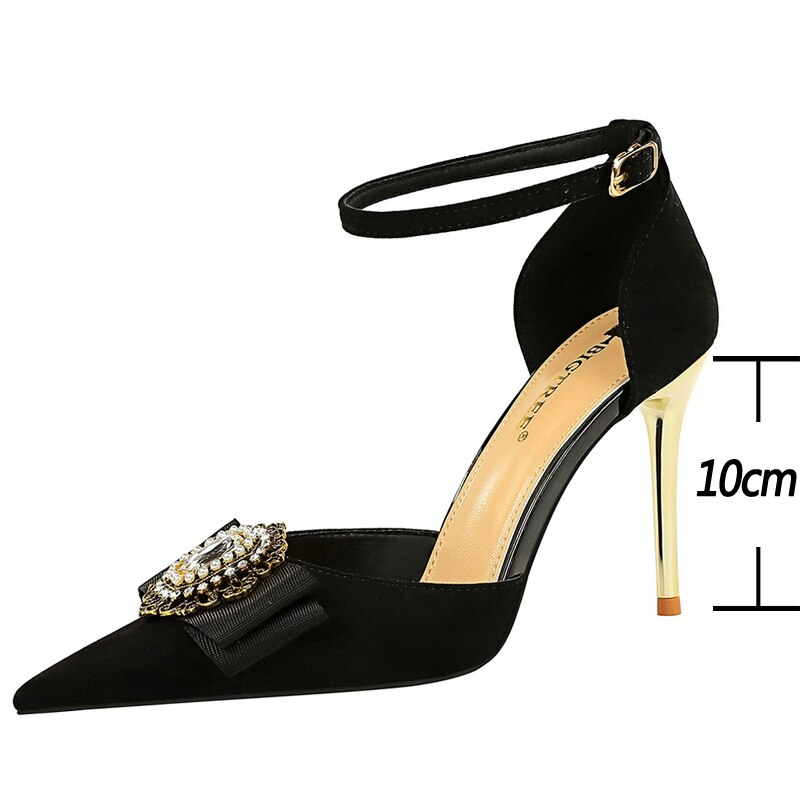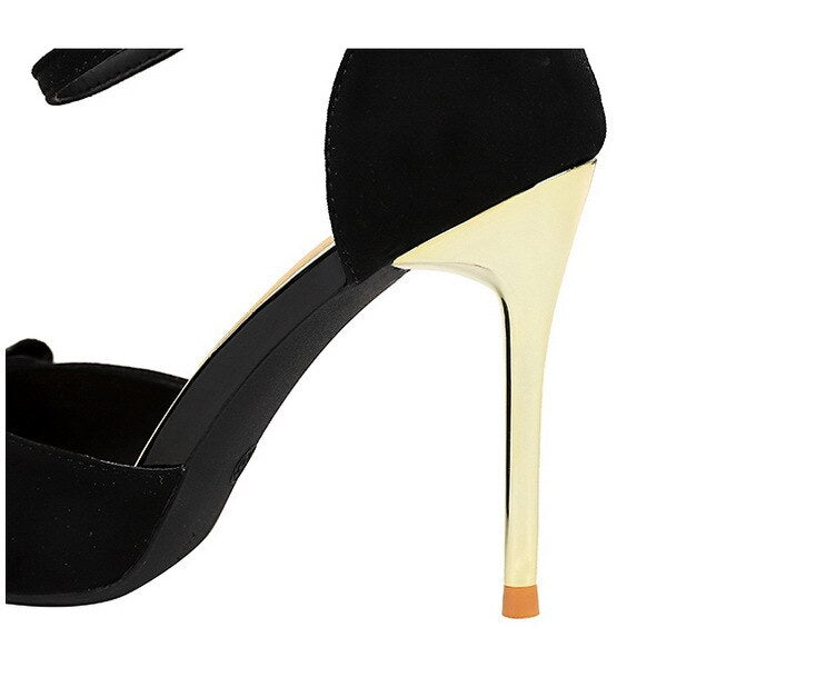 These Up In Flames Stilettos offer flirty style and a comfortable fit. Crafted from quality flock material, they feature eye-catching metal appliques, a supportive ankle strap, and a classic stiletto silhouette. Put the finishing touch on your look with these sleek black shoes.