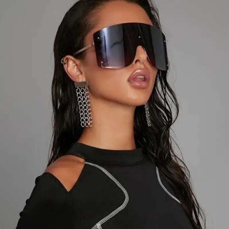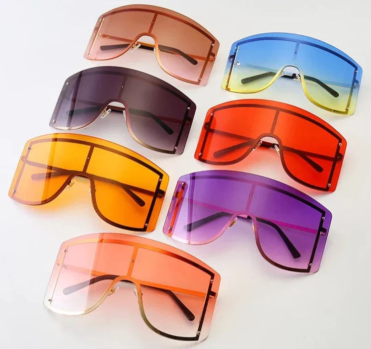 These And I'm Crazy Oversized Sunglasses have a stylish goggle frame constructed from strong alloy and feature lenses made with UV400 and polycarbonate materials for maximum sun protection and durability. Perfect for any outdoor activities.