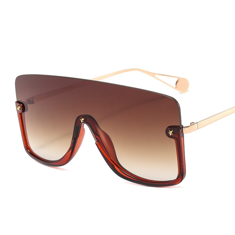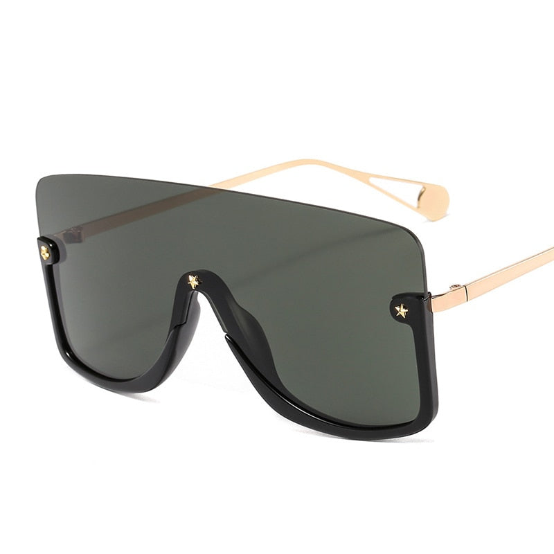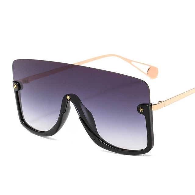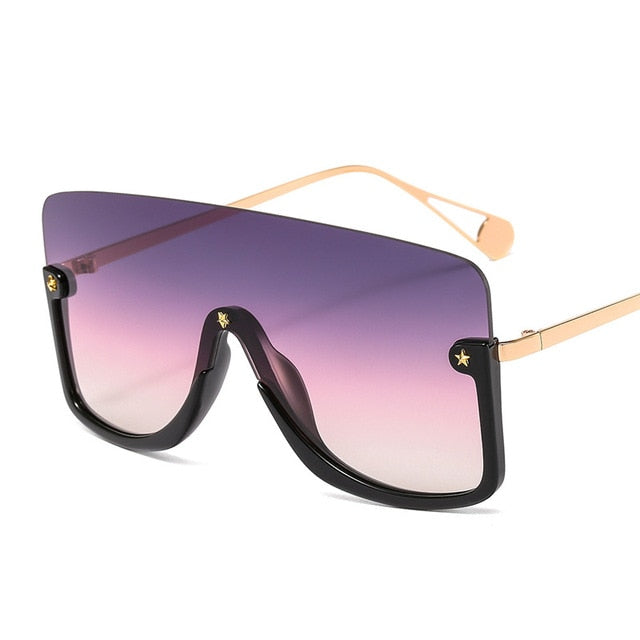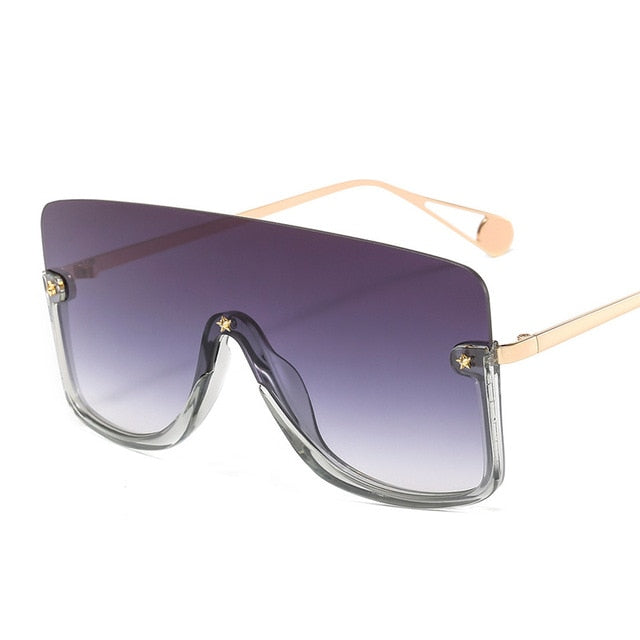 Alloy Frame UV400 Polycarbonate Lens Shield Sunglasses with Rivet Decoration