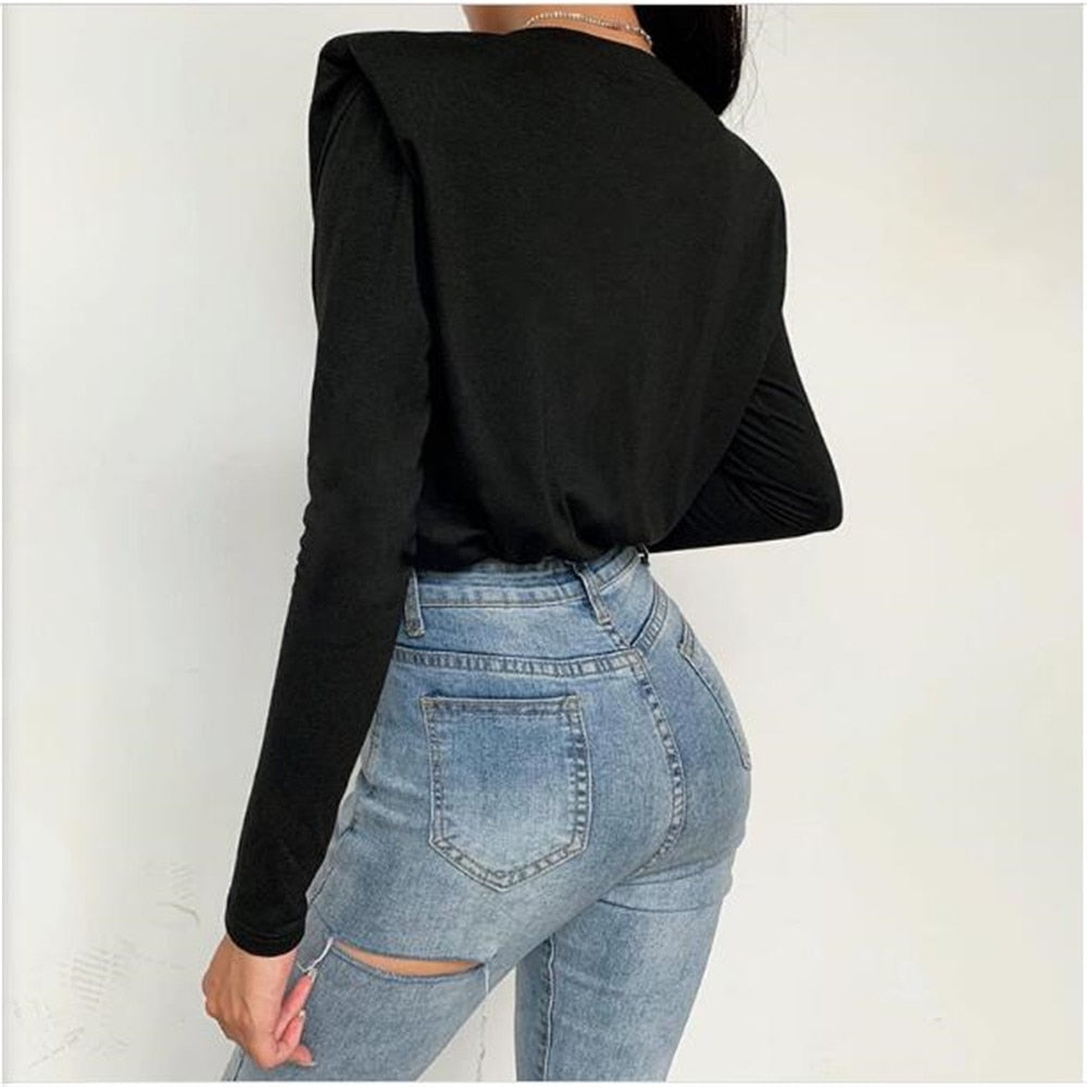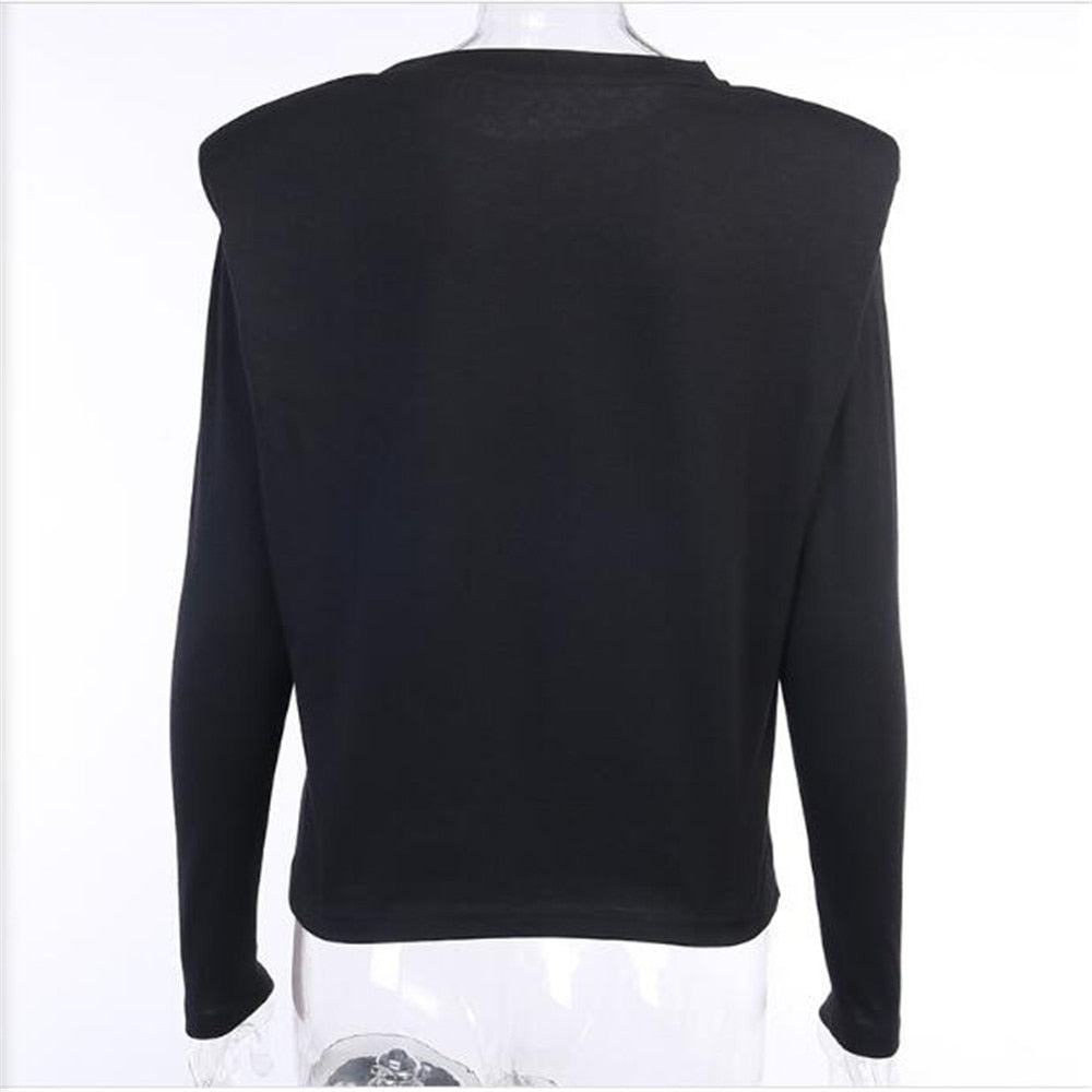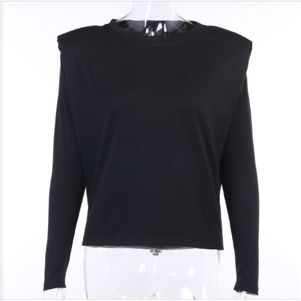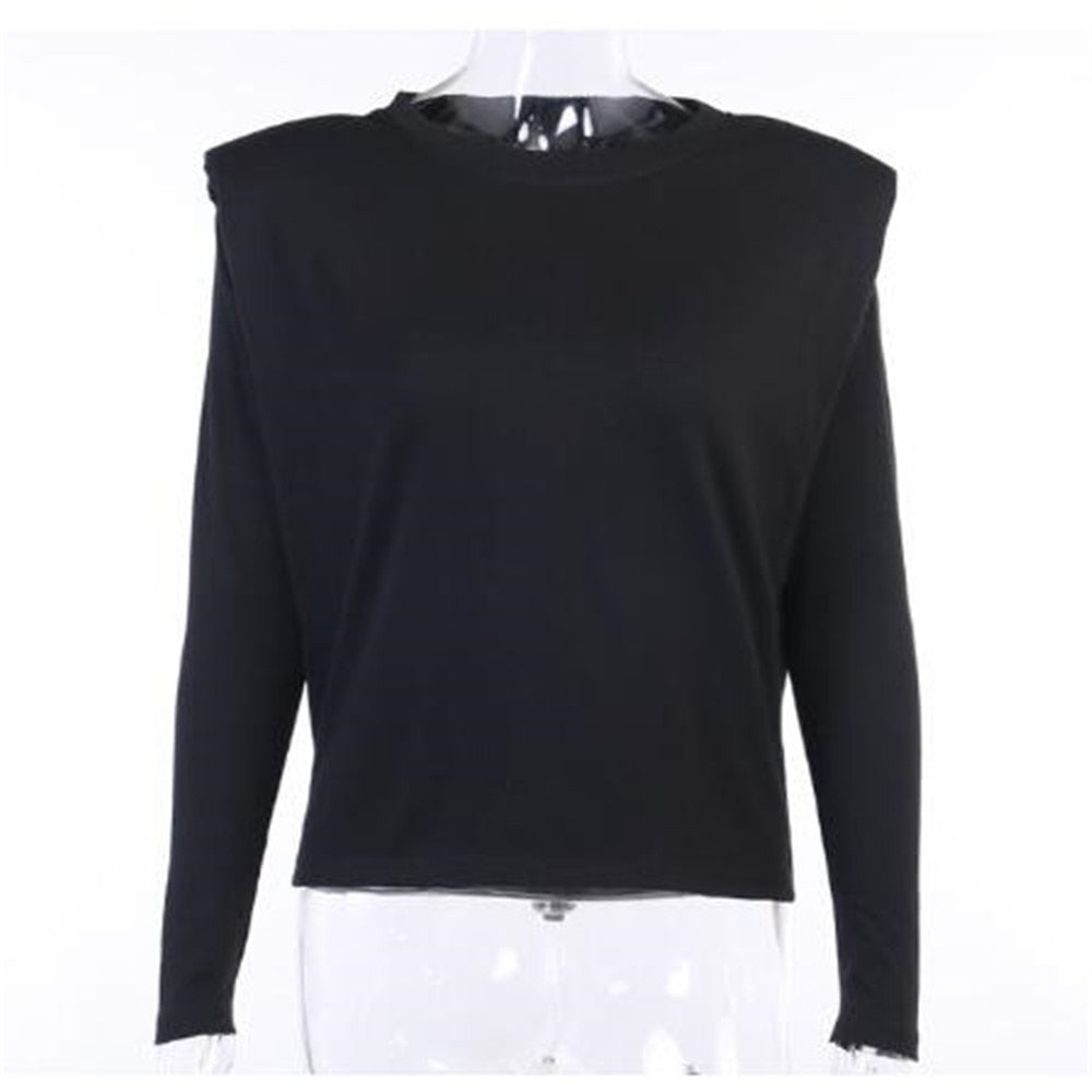 Cotton Polyester Solid Patterned Long Sleeved Padded Shoulder Tee