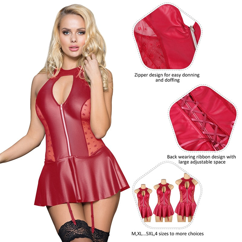 Halter Neck Mini Dress with Front Hollow Out Decoration, Side See Through Style, and Zipper Closure