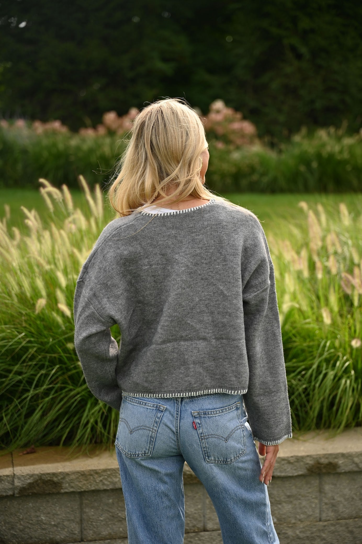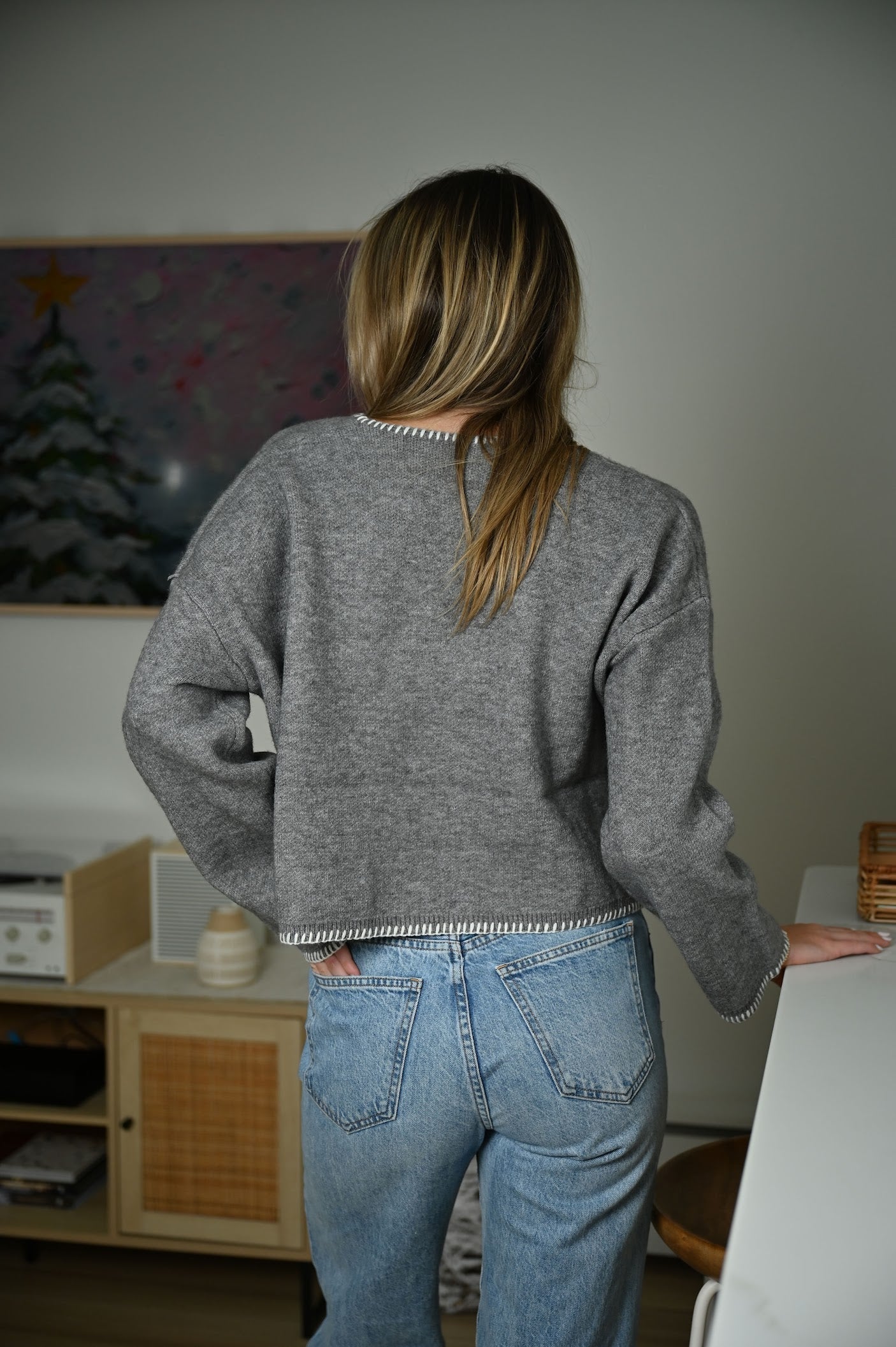 The Barcelona Sweater is the epitome of casual sophistication. Crafted in classic black with distinctive white stitching, it offers a relaxed fit and playful pocket details. This chic sweater is perfect for a stroll through the city or a cozy evening at a café, blending style and comfort seamlessly.