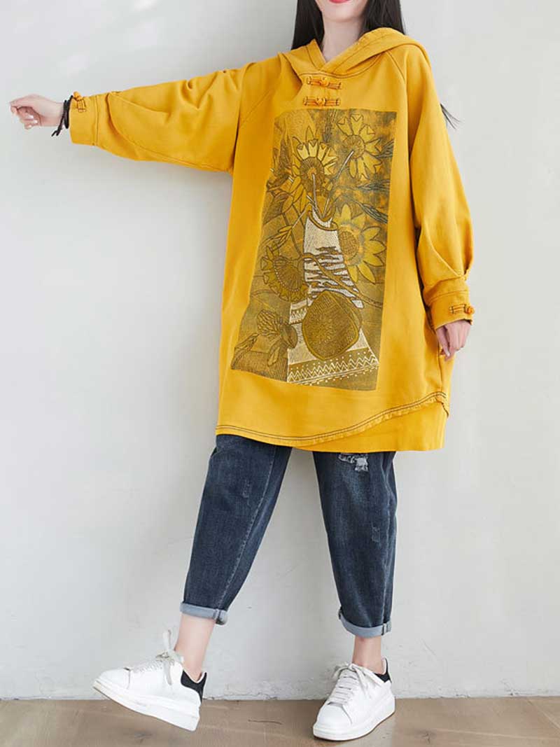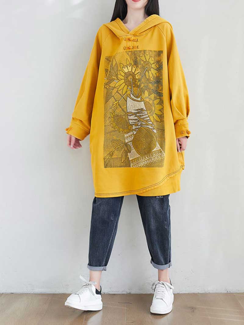City Of Stars Floral Print Hooded Sweater Midi Dress