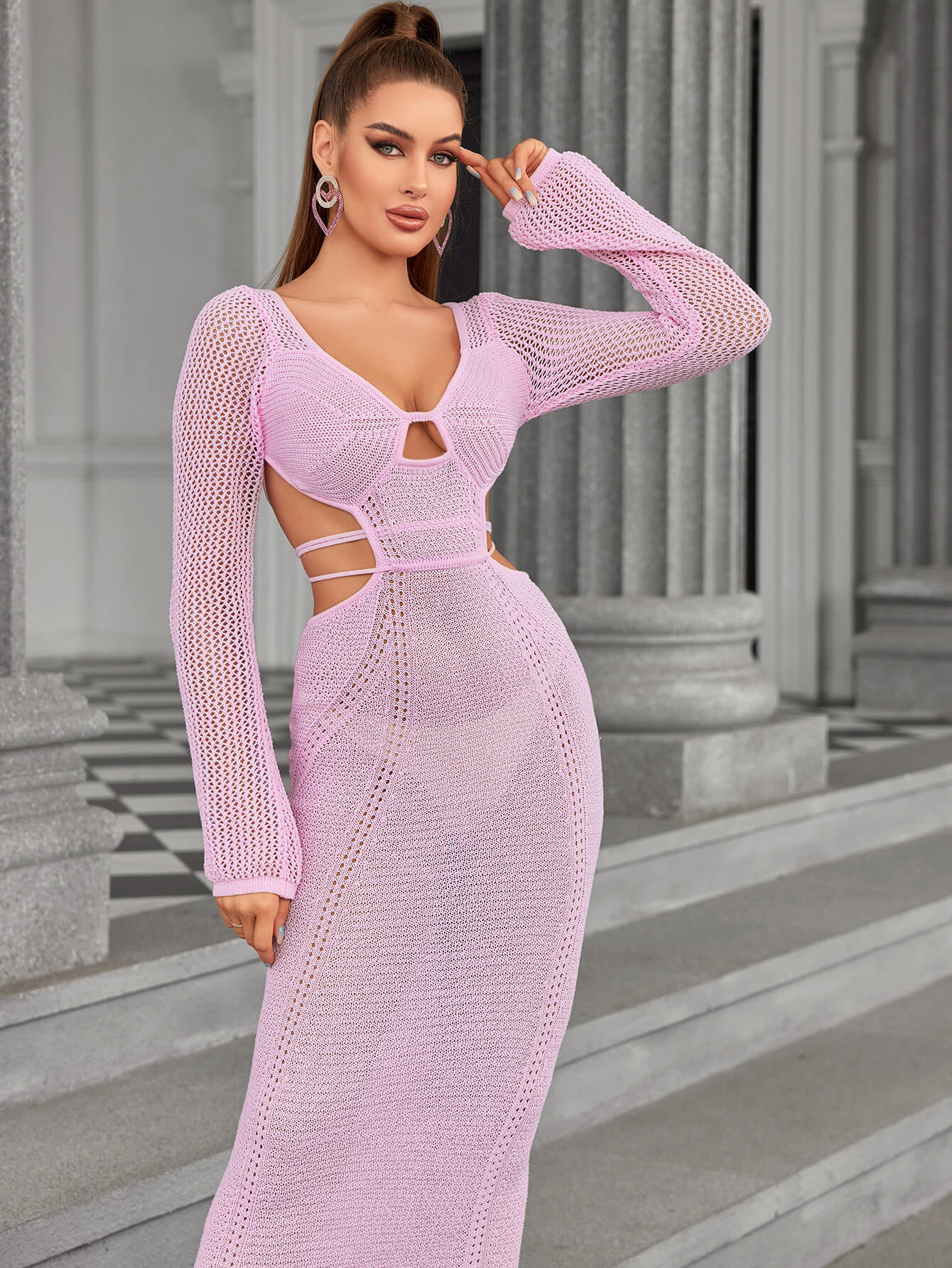 Long Sleeve Cut Out Tie Backless Sweater Dress