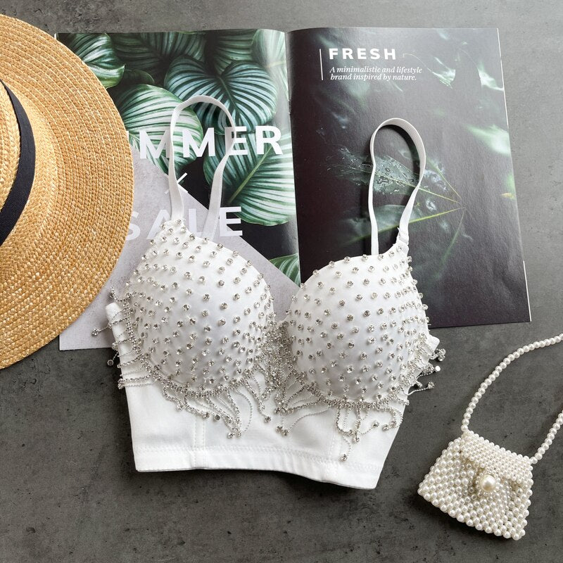 When you're looking for a sexy crop top to show off your curves, you need to try this women's crop top. Made from polyester, this crop top is available in black or white. The rhinestone and tassel decoration will give you a sexy edge that will make heads turn. The spaghetti straps provide a more comfortable fit and style.