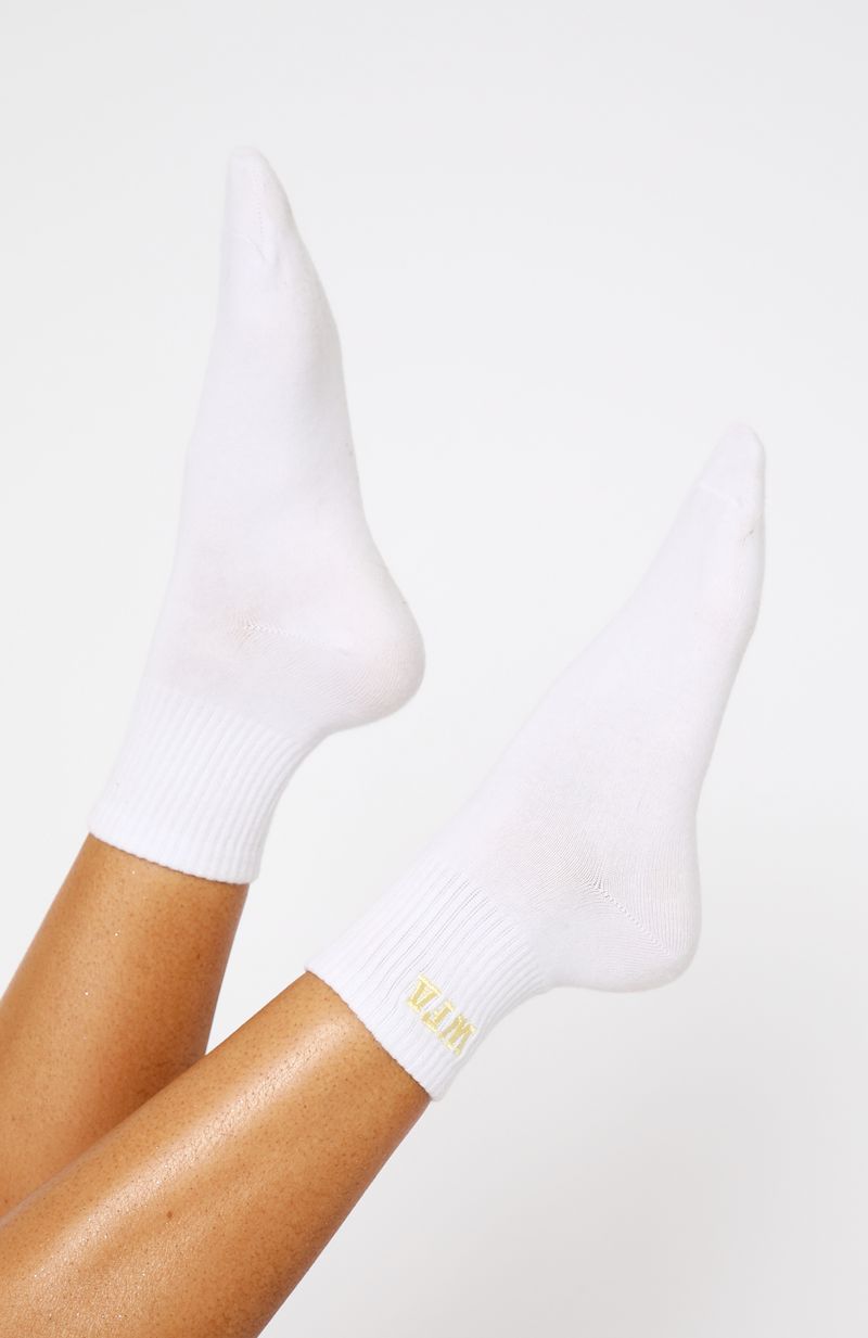 Step up your game in ourAll My Highs Socks White/Lemon! These cushioned crew socks feature embroidered WFA Logo and ribbed ankle cuffs and arch band.
