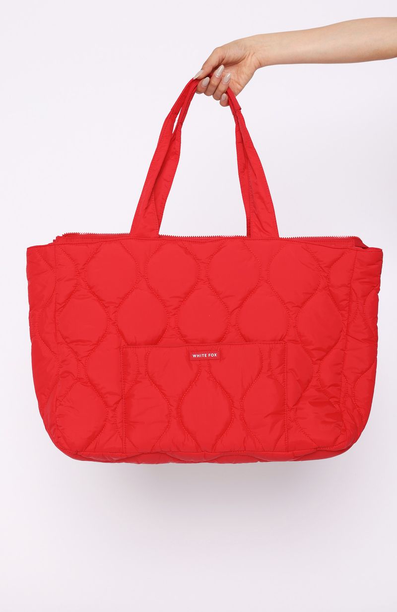 The finishing touch to your next active vibe! The Always Moving Quilted Tote Bag Red features a padded design, large tote shape, zipper closure and side pockets. Keep it functional and add your yoga mat, gym towel and shades!