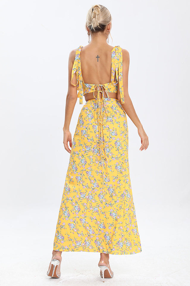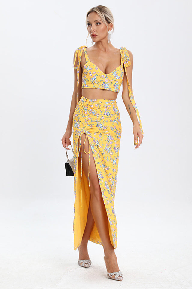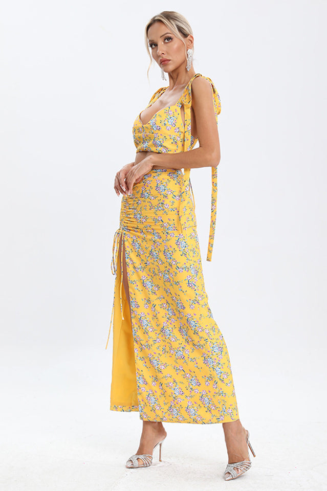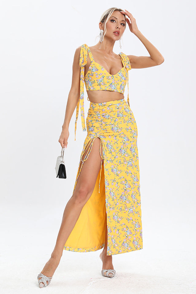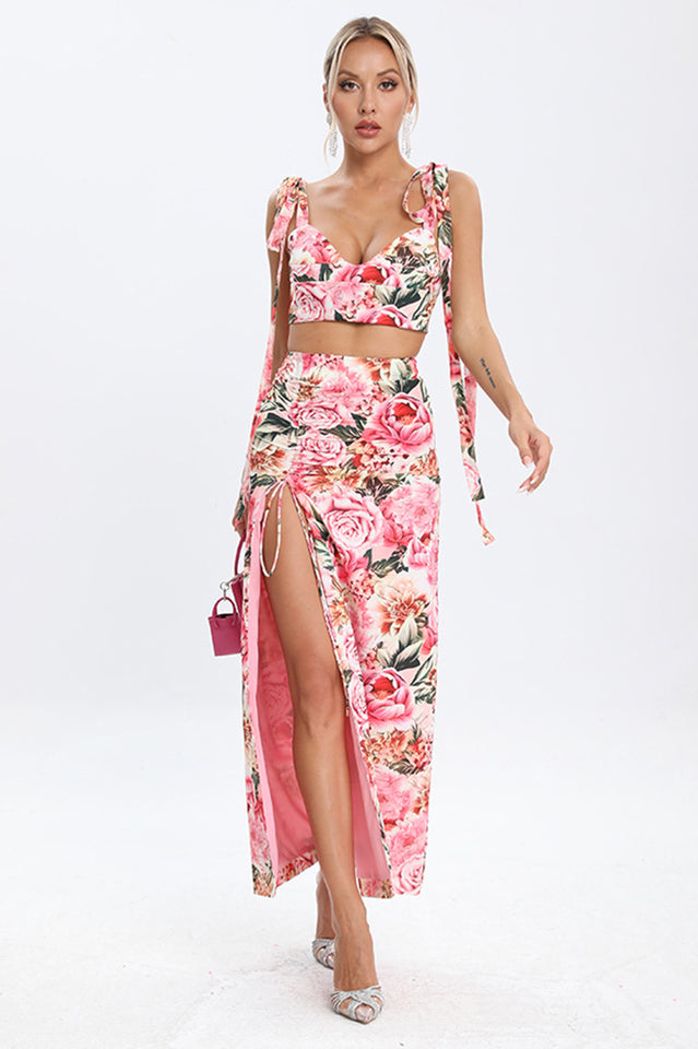 Look sweet as cherry pie in the Annabella Floral Two Piece Set. This matching crop top and mini dress set blooms with watercolor florals for a romantic effect. The stretchy fabric flatters your figure in the cropped top and curve-hugging dress. An adorable match set for all your summer activities!