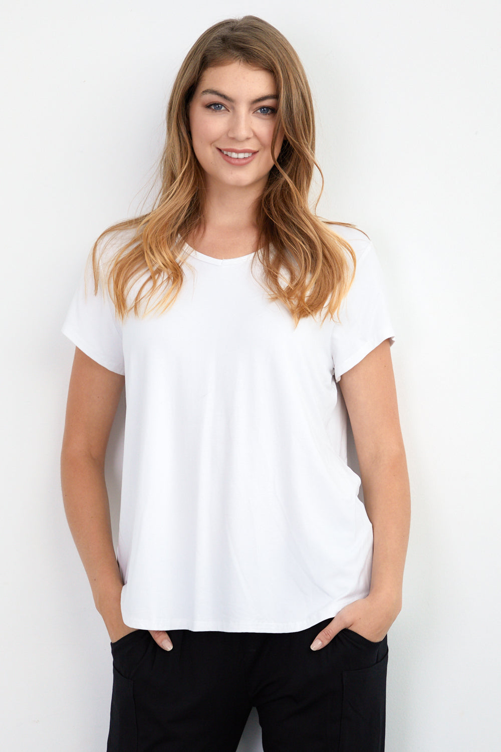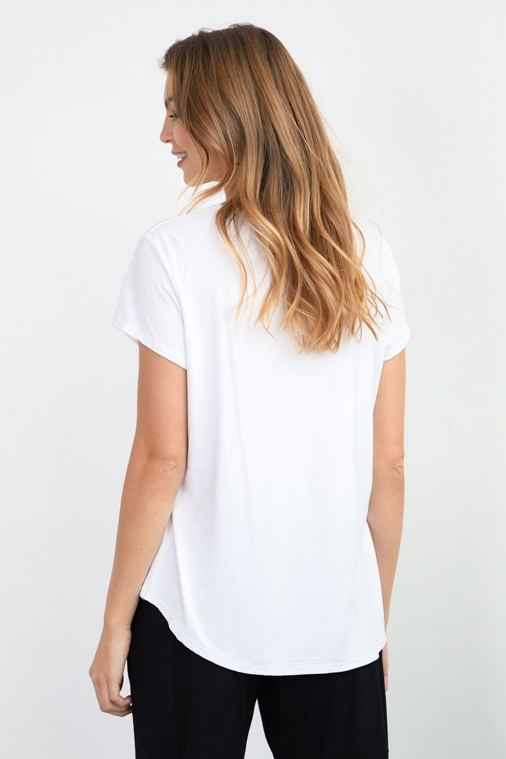 Now in fresh, clean white. If you have yet to add a bamboo piece to your wardrobe, now is the time and we promise you'll never look back! Truly such an incredible fibre, it is unbelievably soft, breathable, moisture-wicking, antibacterial, UV protecting, hypo allergenic, thermo-regulating and odour protecting. A dream come true for hot weather! The classic t-shirt design is so versatile and is bound to become one of your go to basics for years to come. White matches with anything!