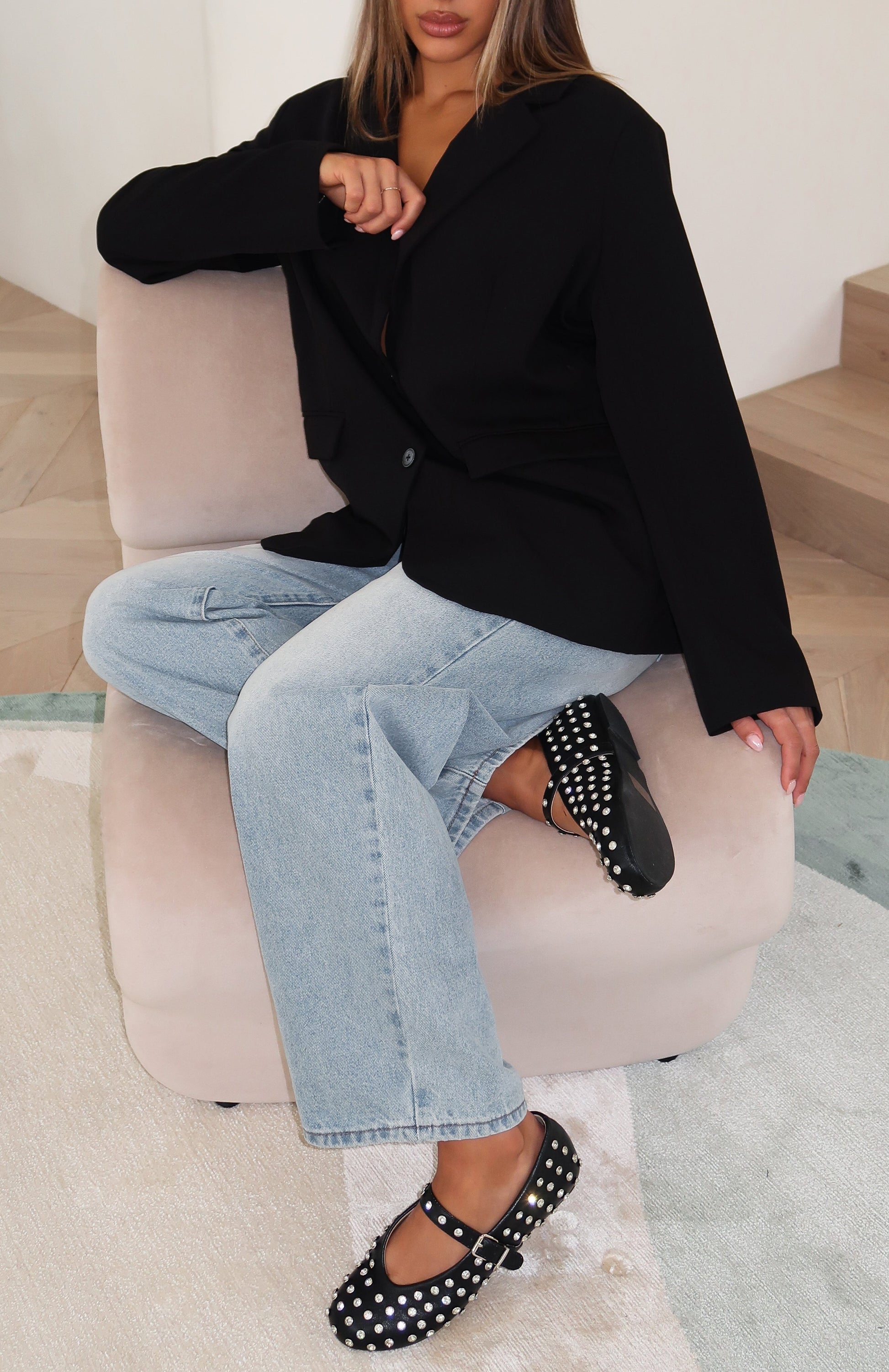 Best Shot Ballet Flats Black features a ballet flat styles, large diamante embellishment, rounded toe design and an adjustable strap. Pair with a straight leg jean and your go to bustier for a look we love!