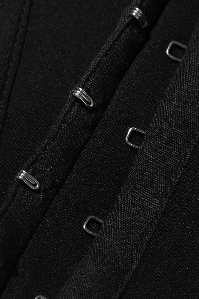 Black Faux Fur Trimmed Bustier is an alluring piece, featuring an off-the-shoulder neckline and luxurious faux fur trim at the cuffs, and a fully cinched waist for an even closer fit. It buttons up the front and has a very flattering cut at the hem.