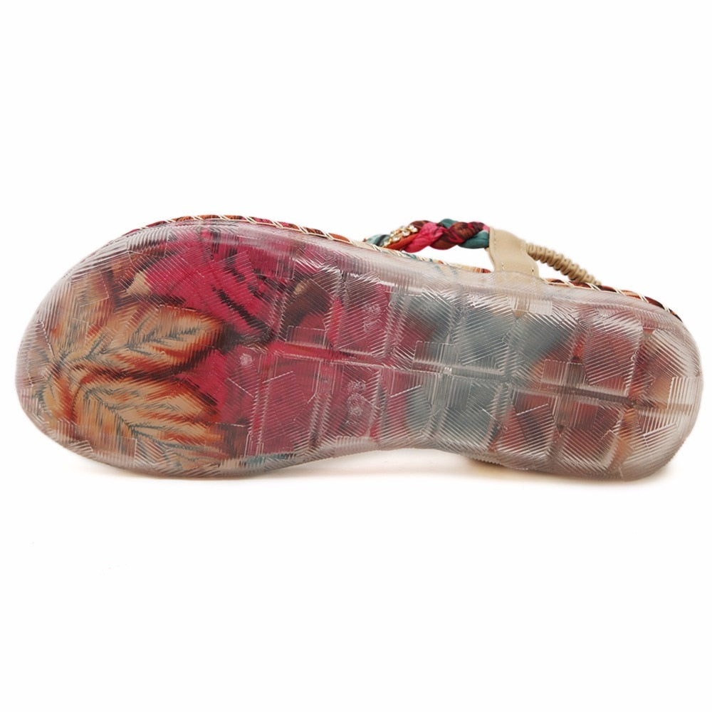 Bohemian Rhinestone T-Strap Strap Flat Sandal