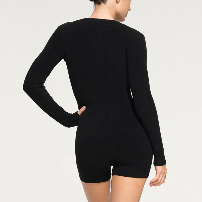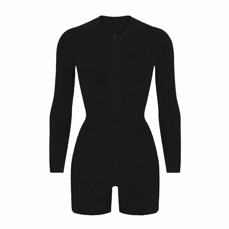 Wrap yourself in effortless style with our romper! Made with comfortable and durable polyester and spandex, this solid-colored romper features a convenient zipper closure. Perfect for any occasion, stay chic and comfortable with our romper.