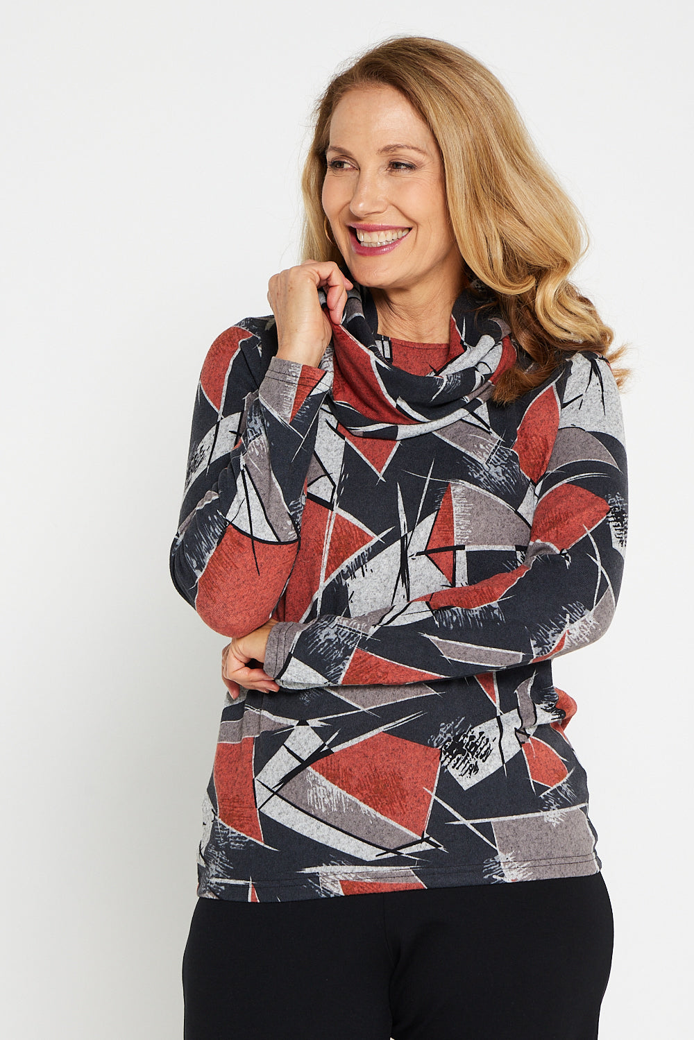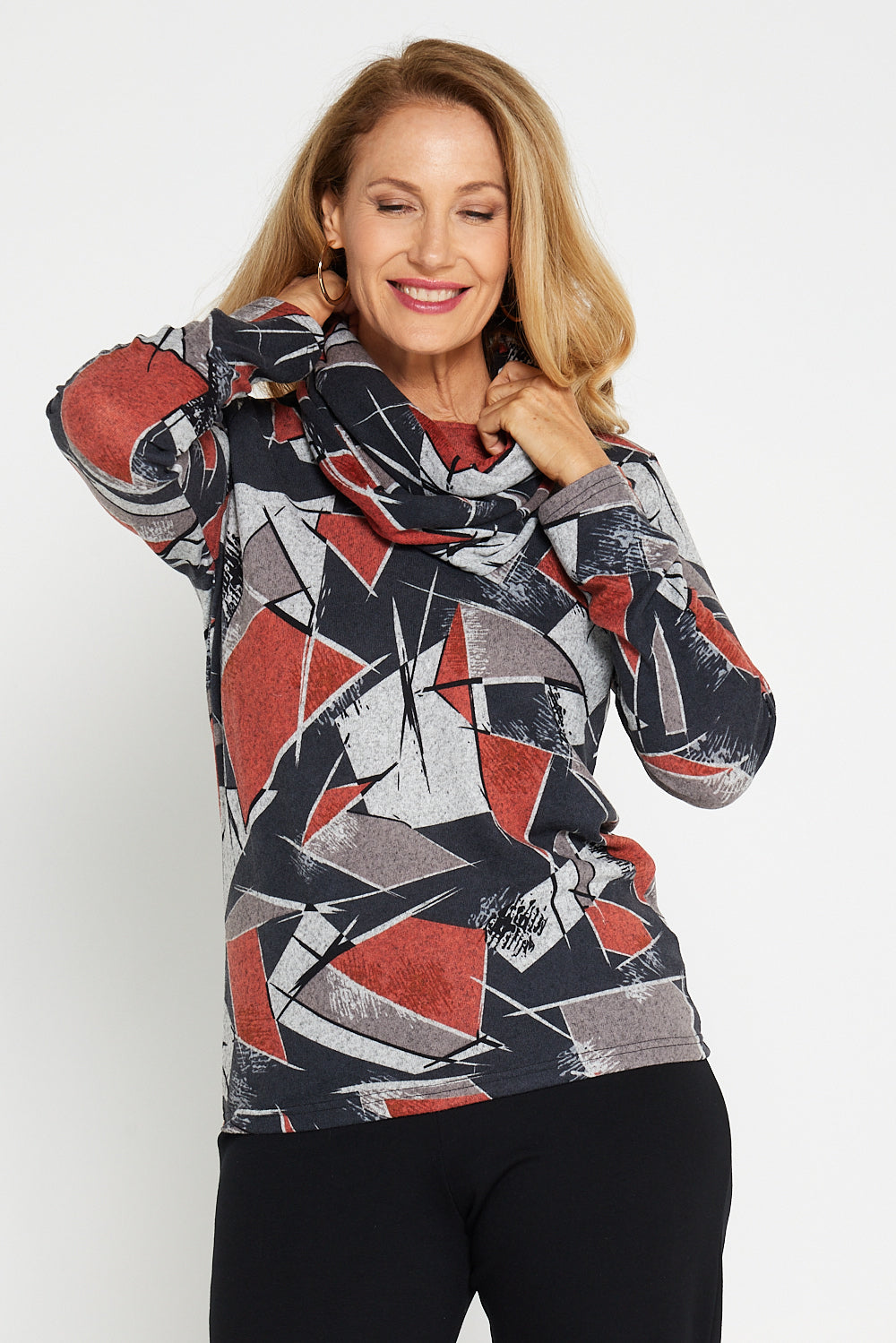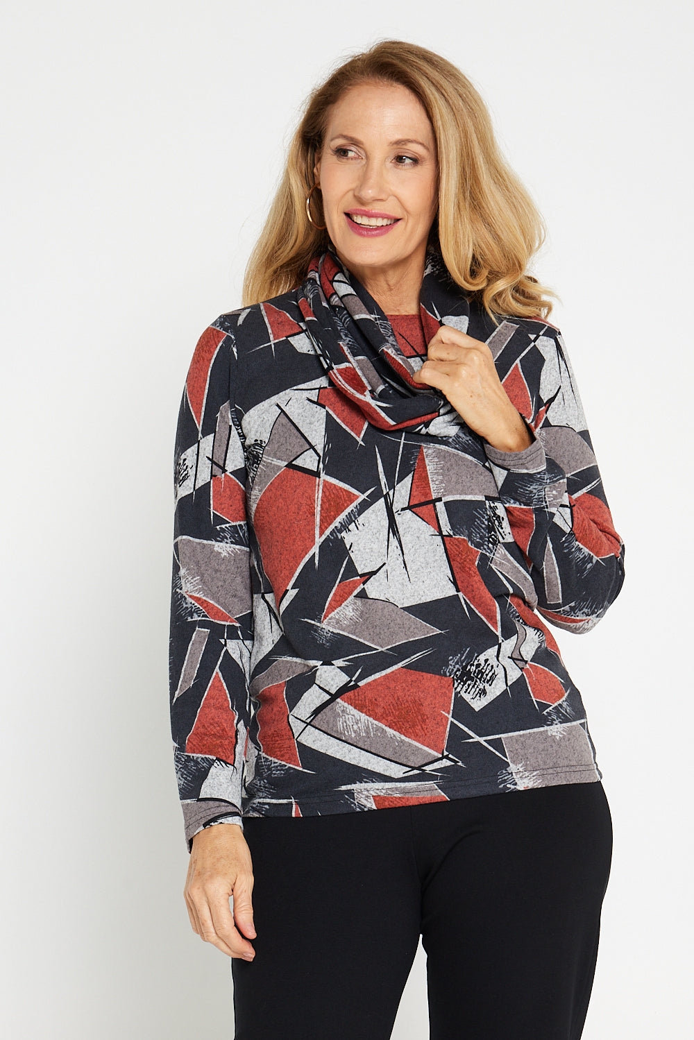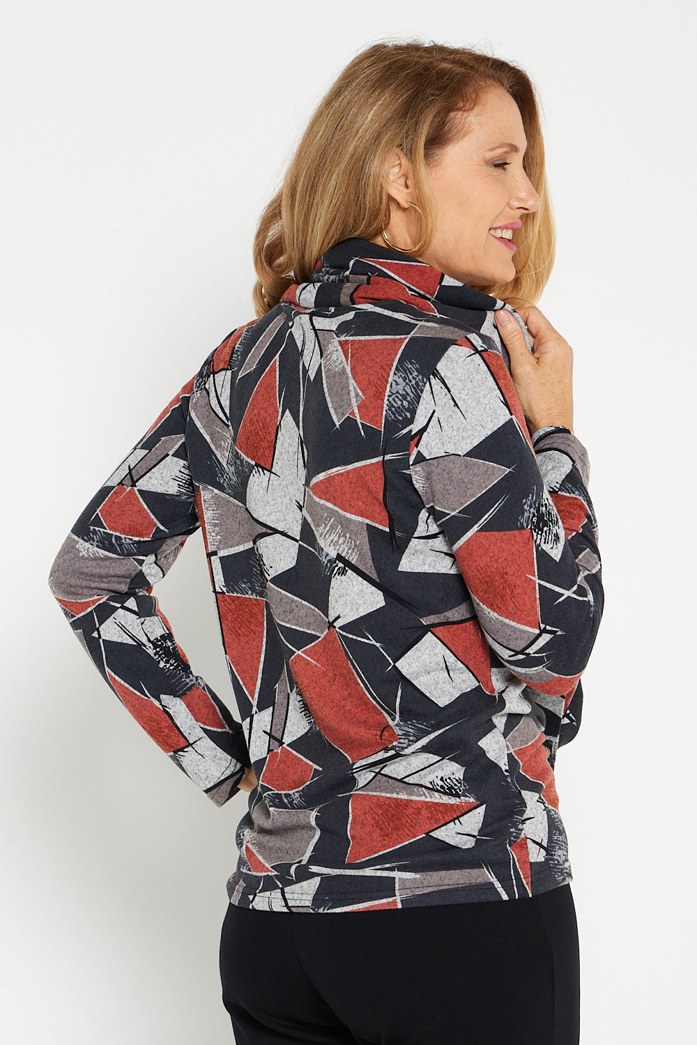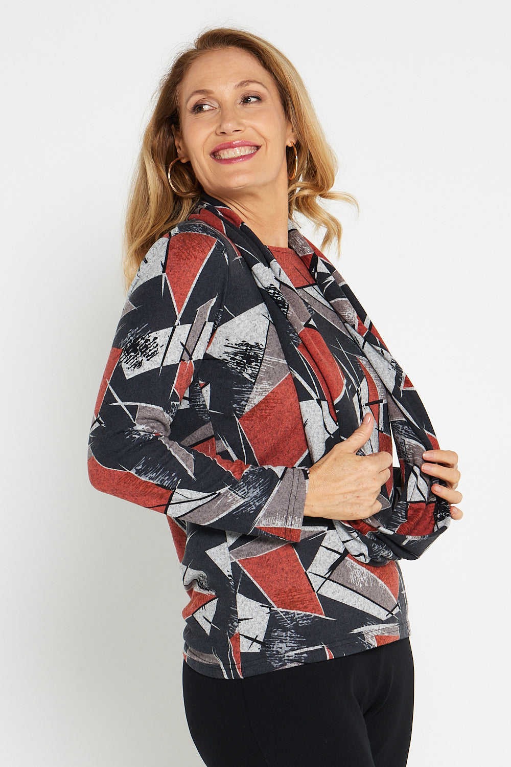 Briston Knit Top & Snood - Black/Rust Geo Print