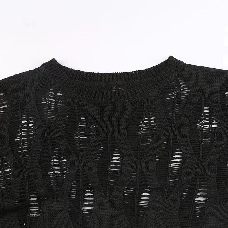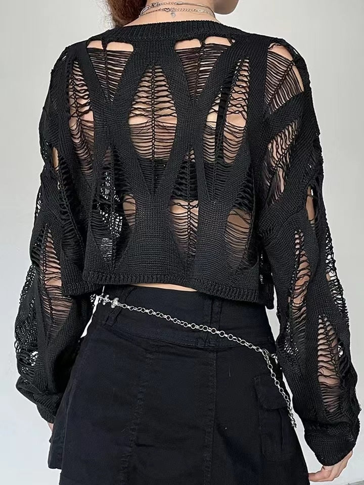 This Burning in a Hopeless Dream Crop Top is designed with casual style and made of Polyester fabric with slight stretch. Featuring a loose fit, it has short clothing length with full sleeve length and O-Neck collar. Decorated with hollow out, it provides a stylish look. Perfect for any occasion.