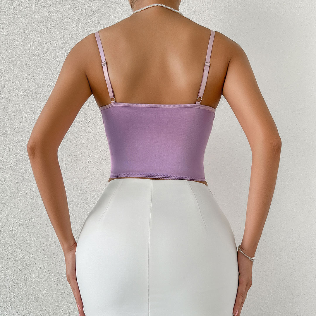 Butterfly Applique Hook and Eye Silky Satin Corset Top - Purple
