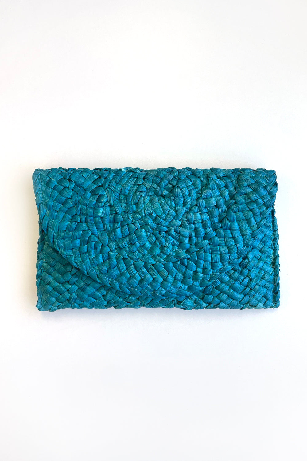 Elevate your event look with this elegant Cabana Raffia Clutch. Crafted from emerald tone paper raffia for an effortless resort wear finish. This clutch is designed with a curved flap, faux leather binding, fully lined interior, and magnetic button closure. Add the finishing touch to your outfit with this beach-chic clutch, perfect for summer days.