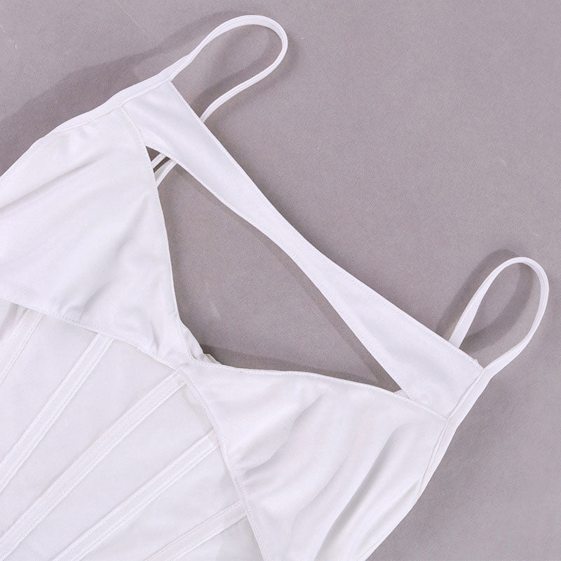 Chic Cut Out Mesh Trim Sleeveless Curved Hem Crop Corset Top - White