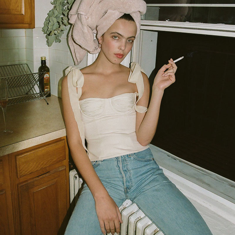 Chic Tie Strap Ruched Balconette Bustier Cropped Top - White