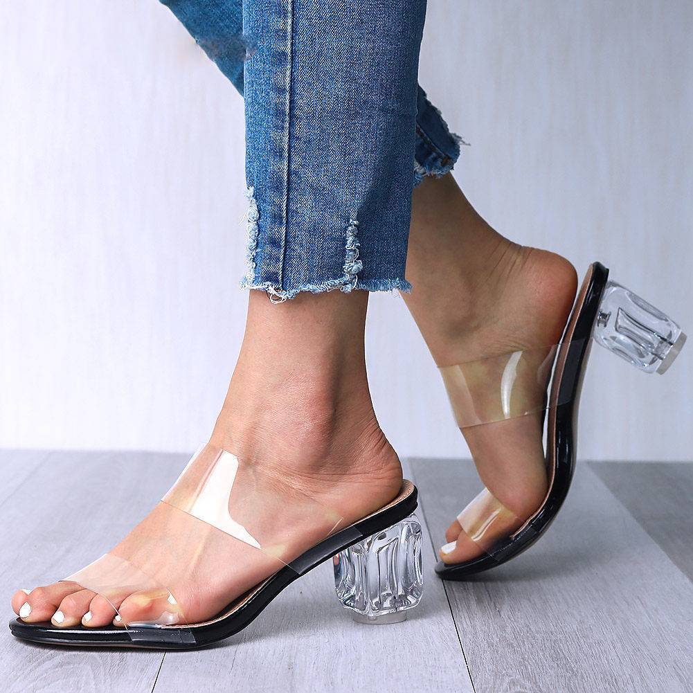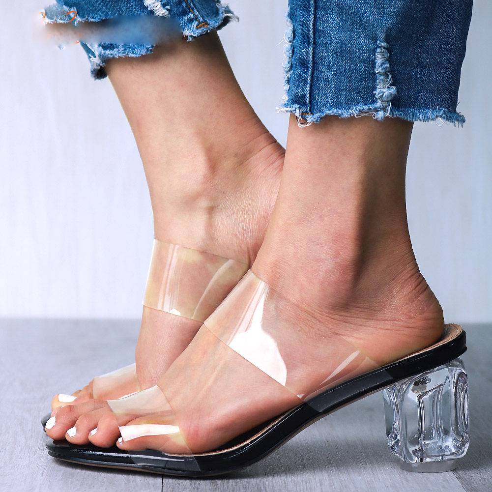 Transparent PVC Pumps Sandal with Unique Squared Heels