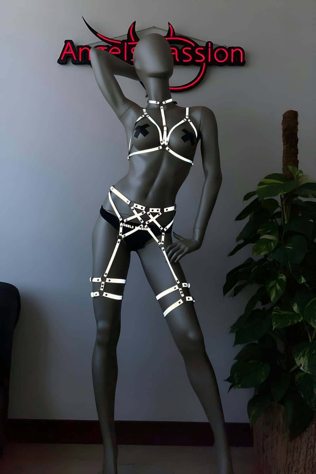 Club Dresses Sexy Glow In The Dark Reflective Harness Suit