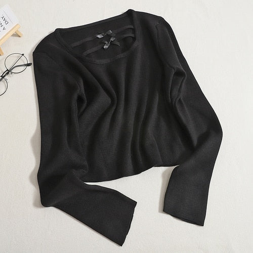 This t-shirt is a sophisticated wardrobe essential. Cut from a solid polyester fabric, the t-shirt is detailed with a bow on the neckline and full-length sleeves. Its classic style will effortlessly bring a touch of refinement to your ensemble.
