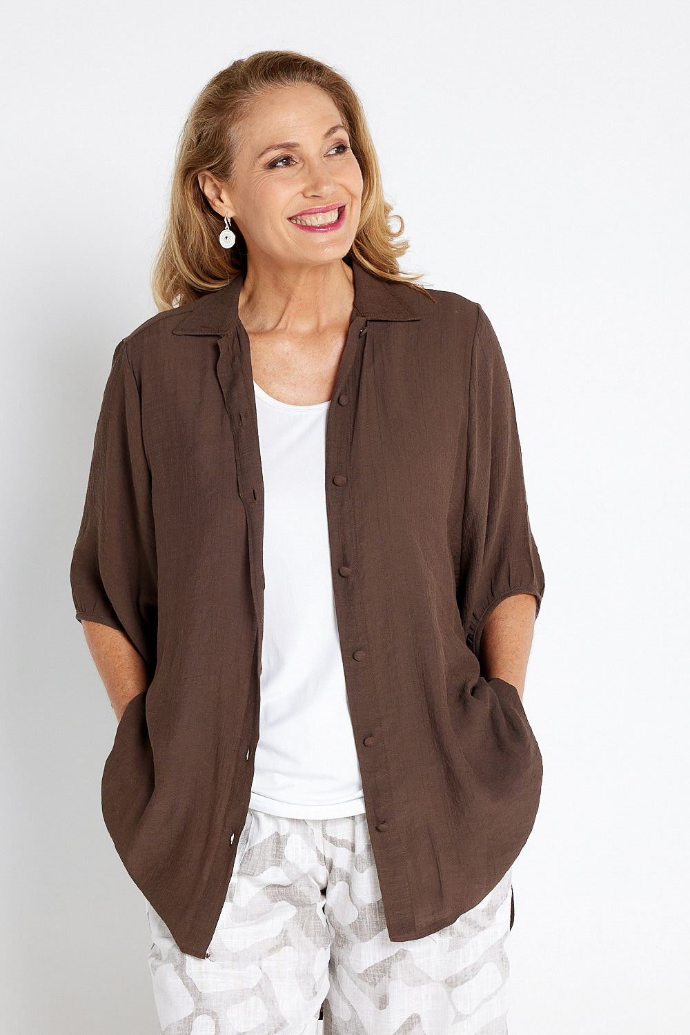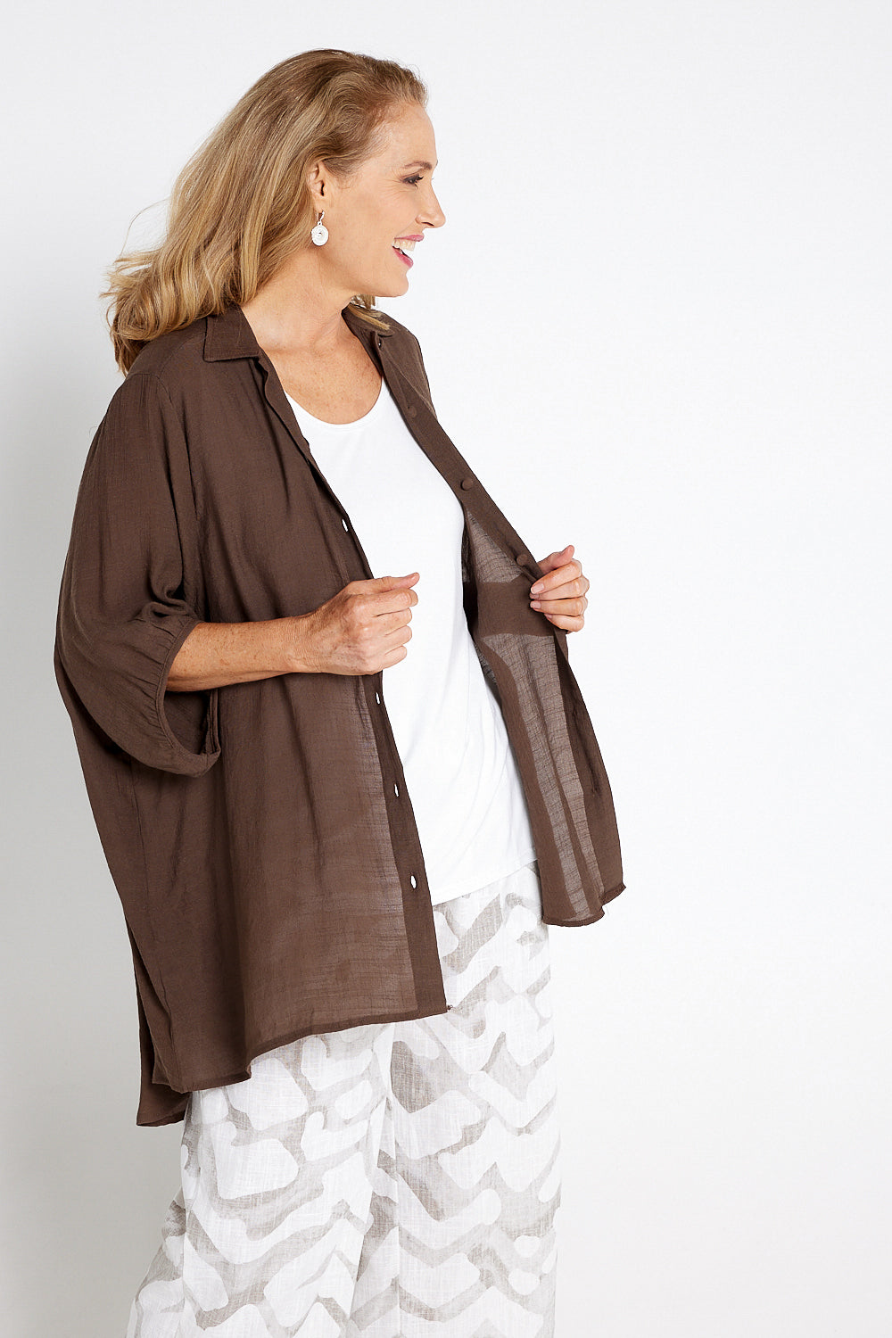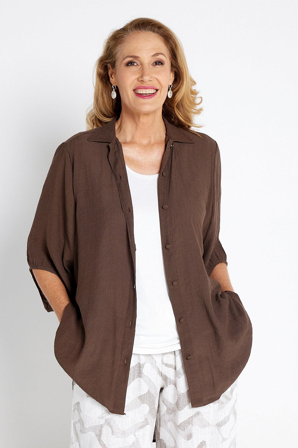 A long time essential from Cotton Village, the Comfort Shirt is such a handy basic. Now available in brown, this is one of the most on trend colours at the moment, but is also always a great neutral to have on hand.