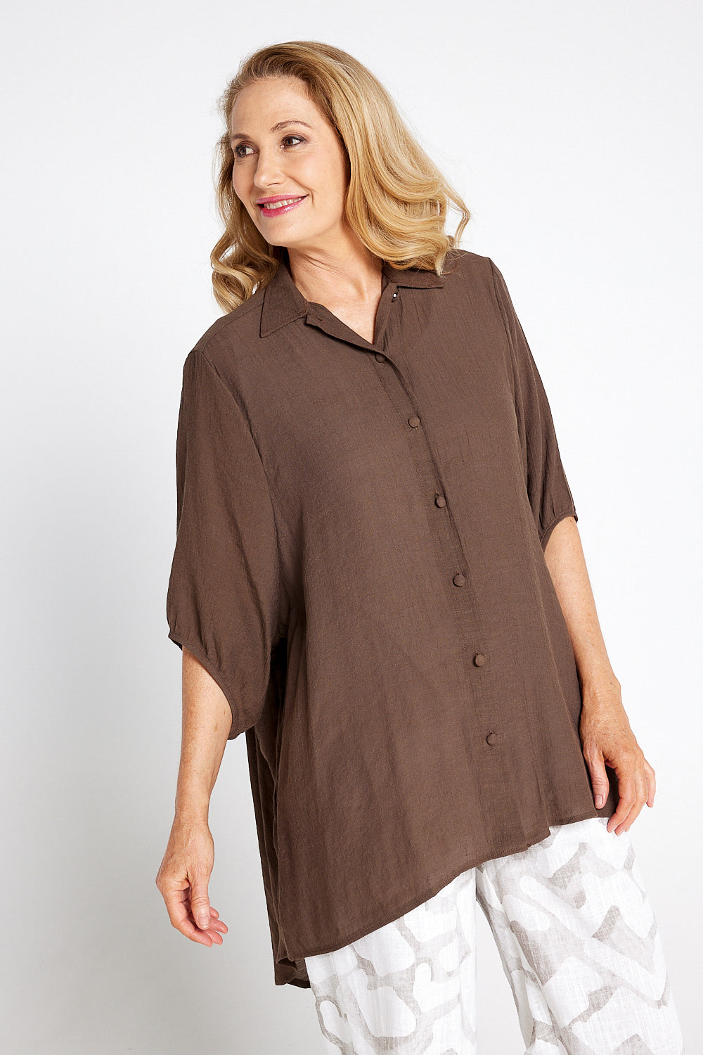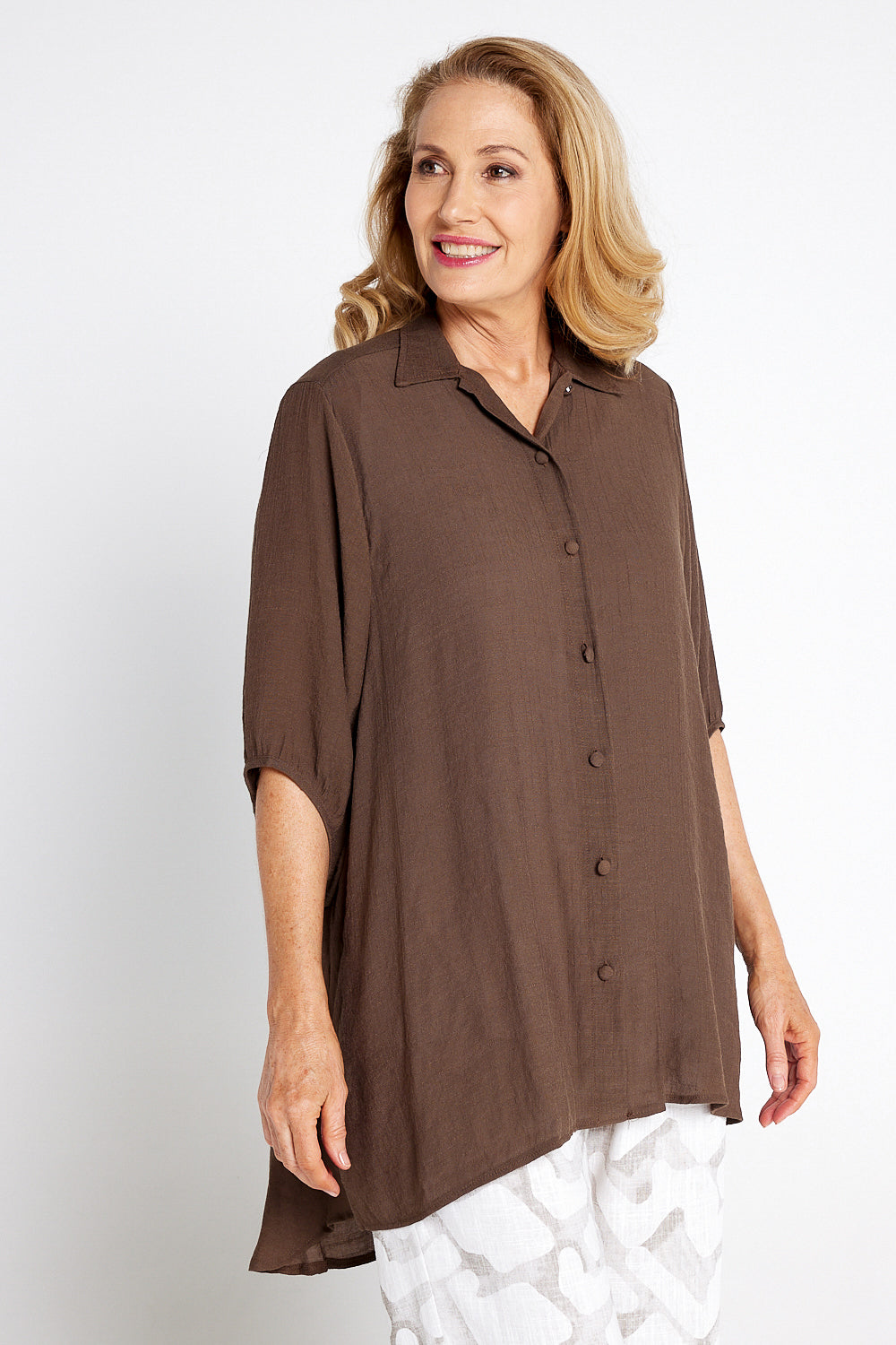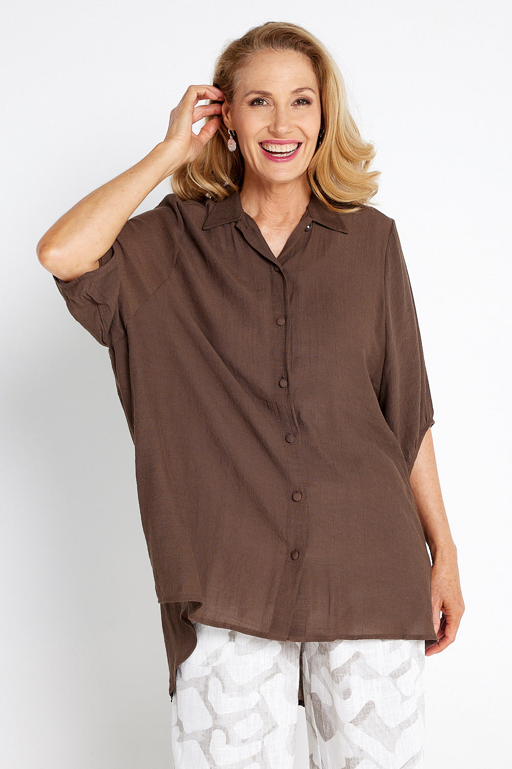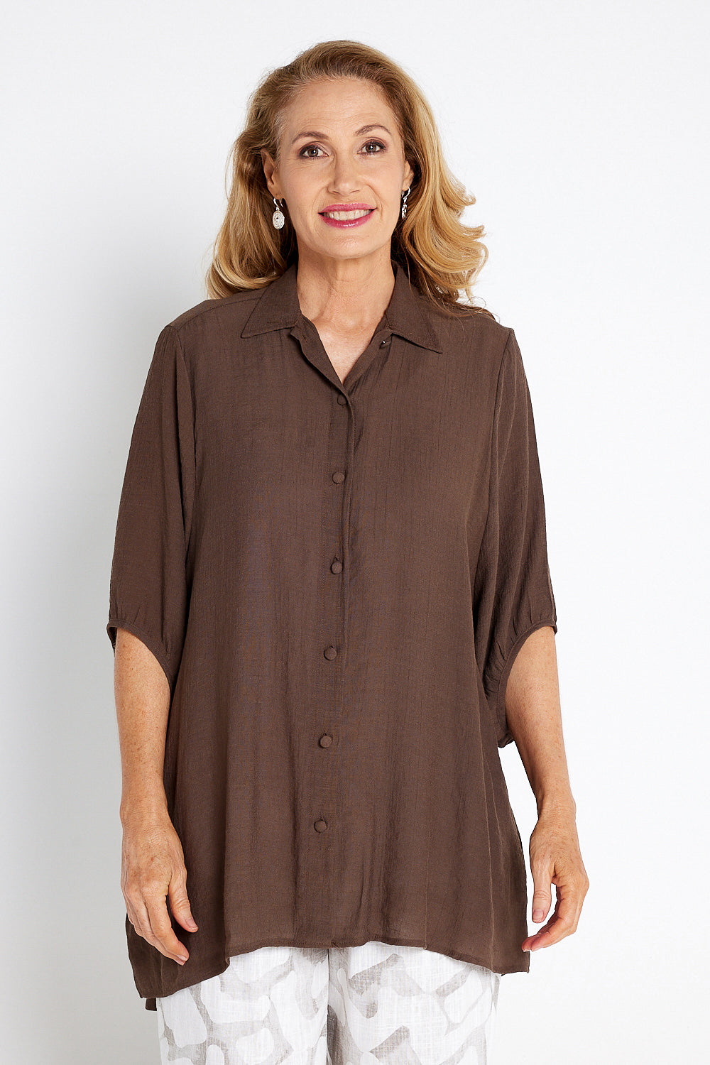 A long time essential from Cotton Village, the Comfort Shirt is such a handy basic. Now available in brown, this is one of the most on trend colours at the moment, but is also always a great neutral to have on hand.