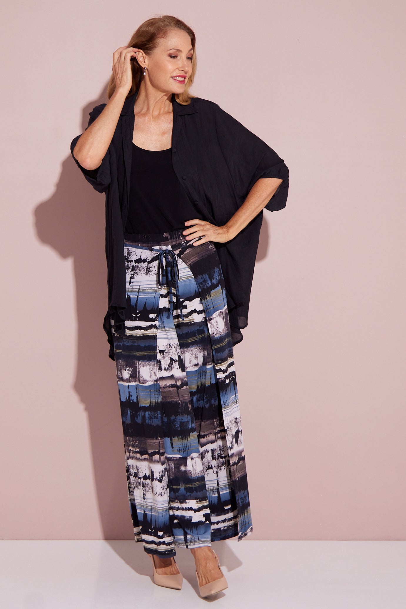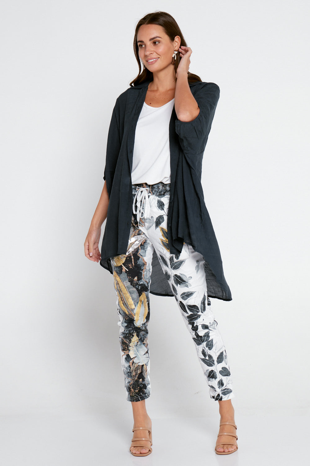 Whether you button it to show off its longline, tunic silhouette, or leave it open to create the perfect lightweight warm-weather jacket, you will be comfortable and stylish. Cut from a cotton-rich, textured fabric, this shirt drapes effortlessly over the body. A beautiful canvas for accessories, there's nowhere this cool, breezy design won't come in handy.