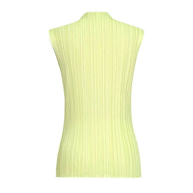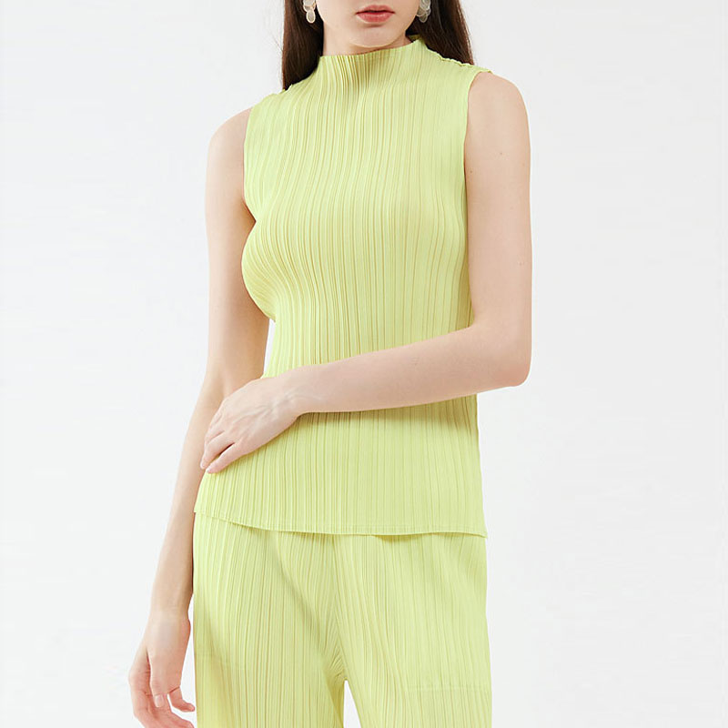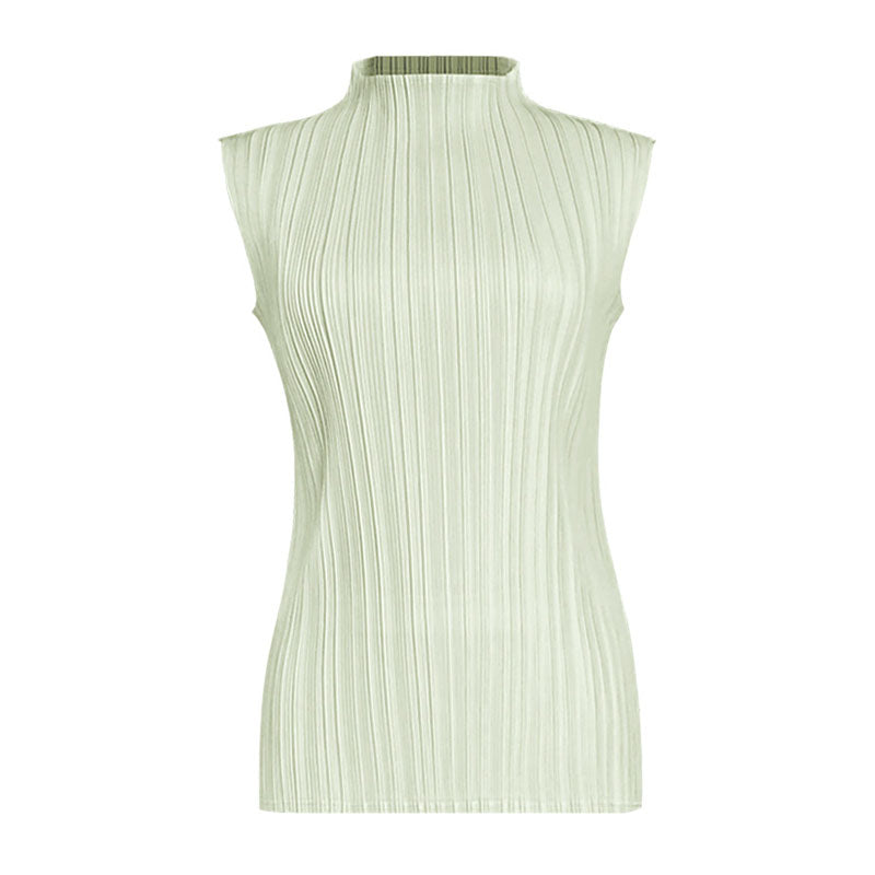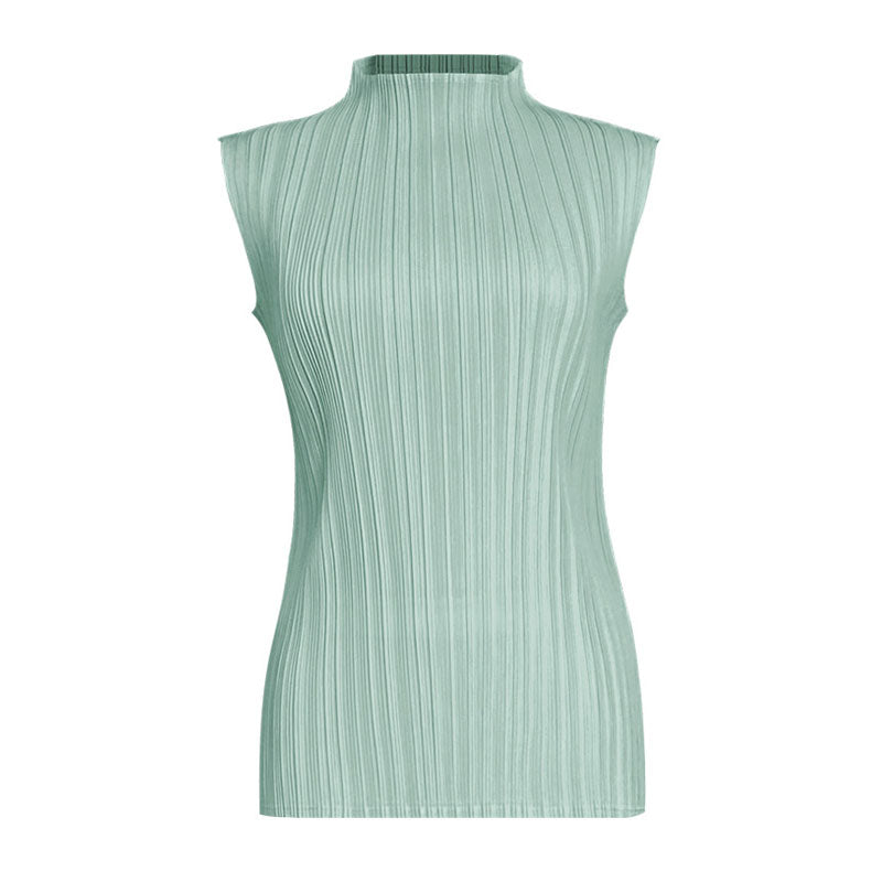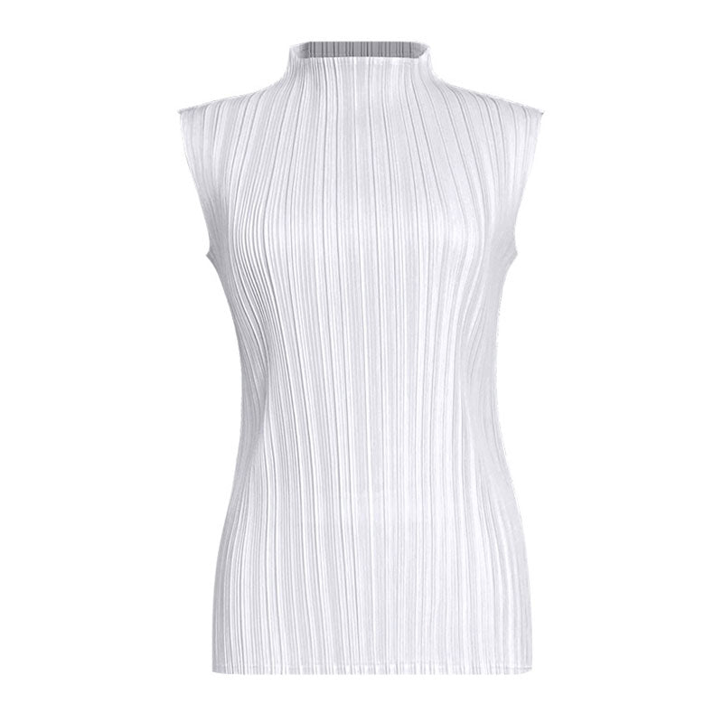Comfy Solid Color Mock Neck Slim Fit Pleated Sleeveless Top