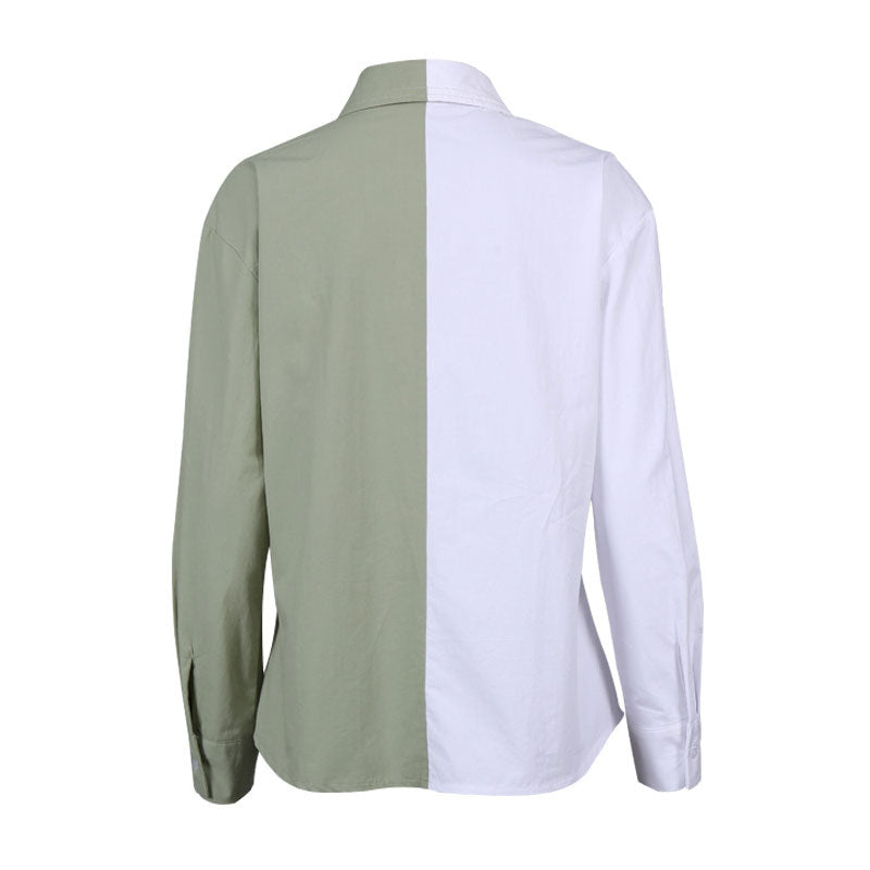 Contrast Color Faux Leather Panel Trim Long Sleeve Button Up Shirt - Green
