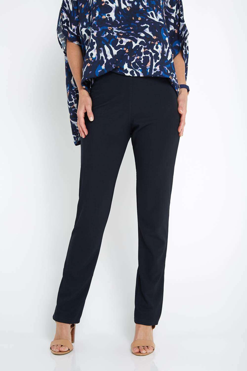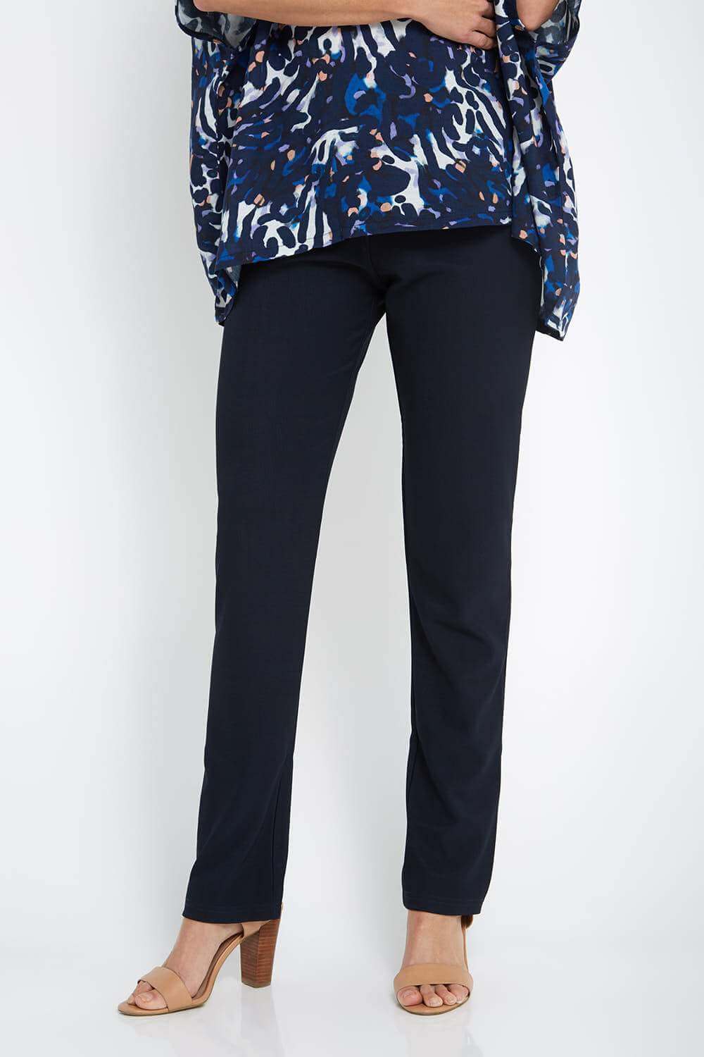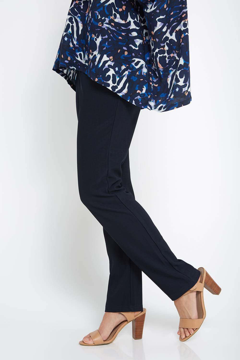 Famous the country over and now available in Navy.  Sleek and sophisticated, these pencil pants make a timeless staple. The thick, textured jersey is stretchy and flattering and makes the fit easy. The texture adds a subtle detail to the simple design. Perfect for anything from casual days, corporate wear or evening attire.