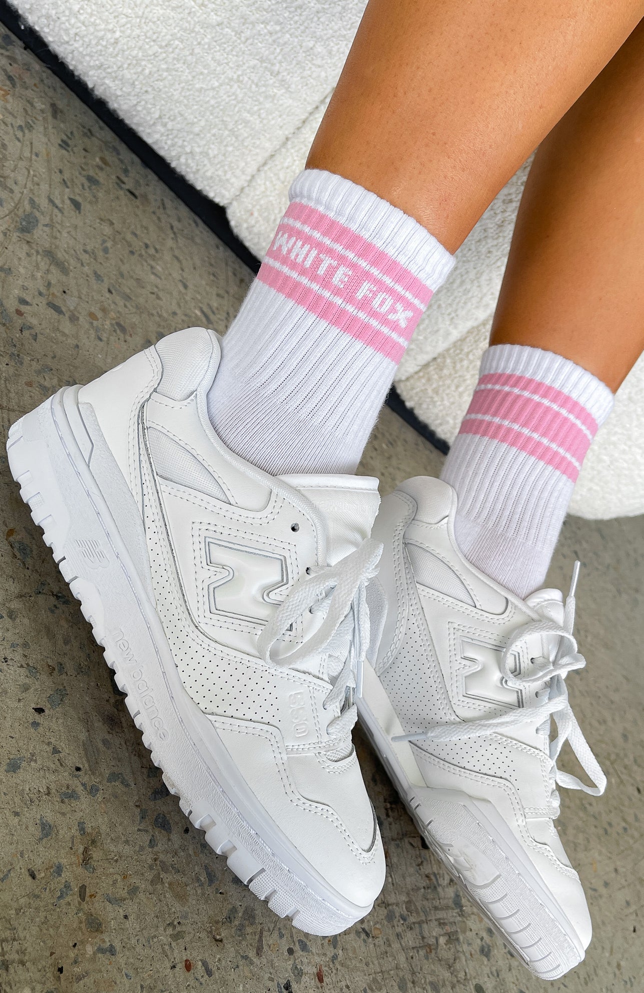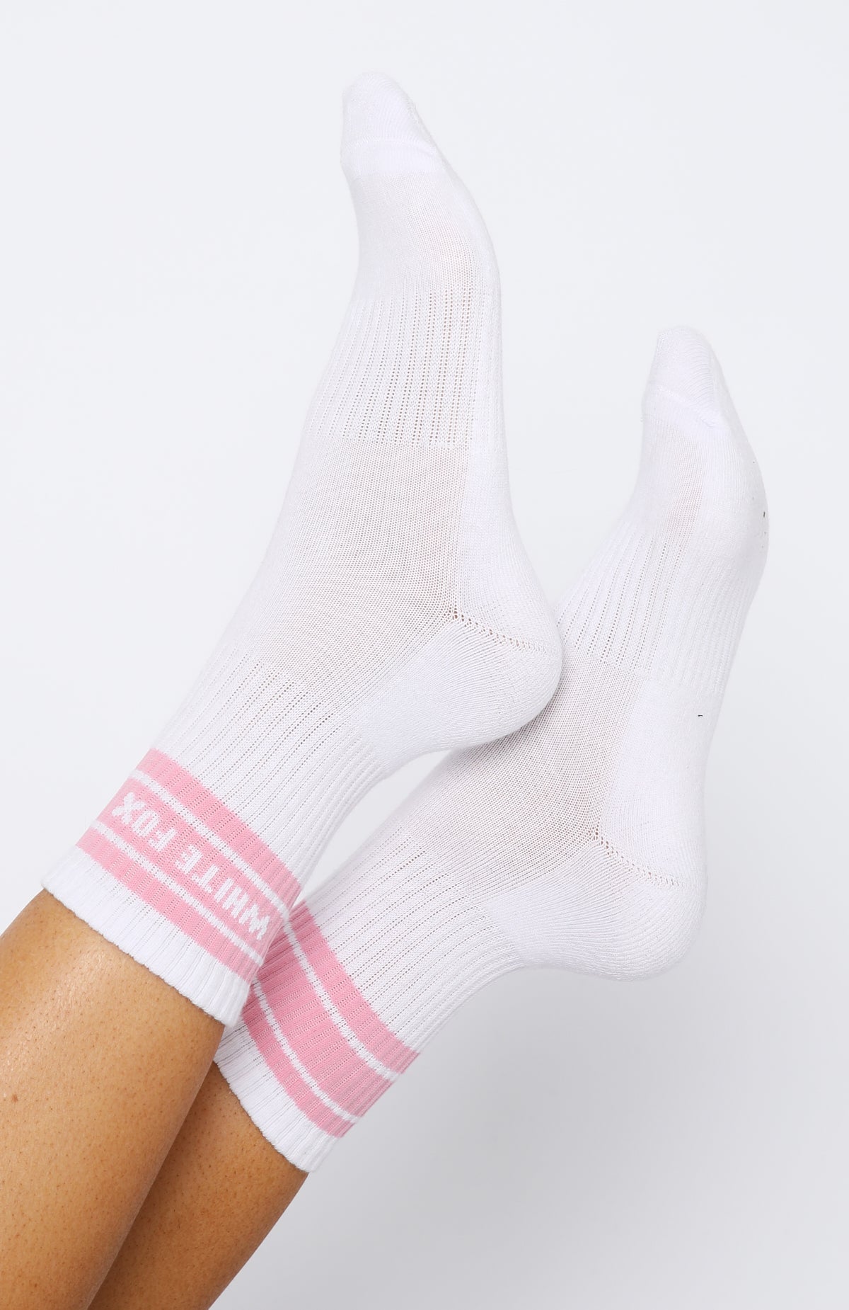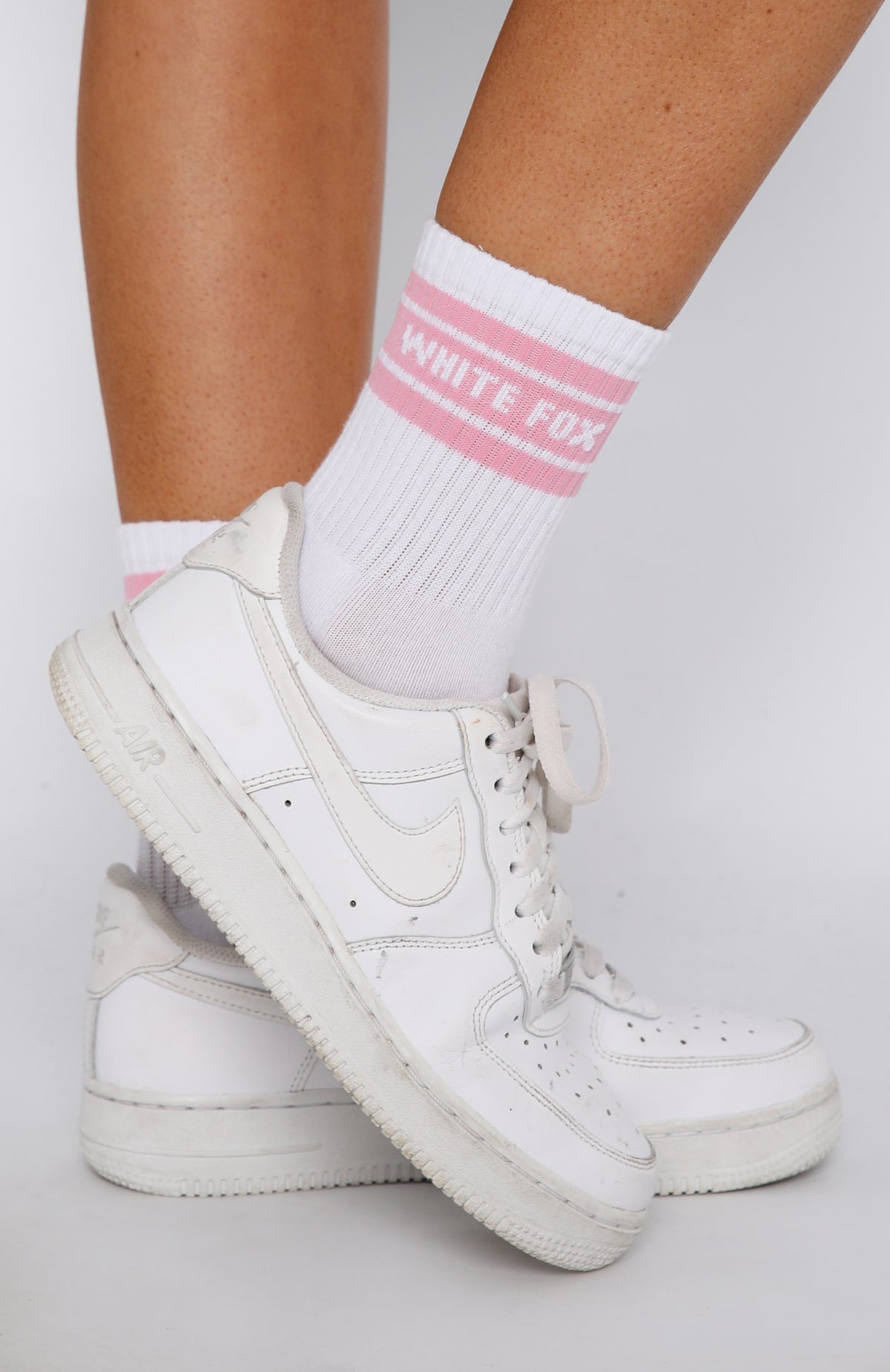 Give your off-duty outfit a sporty edge with these Count On It Socks White/Pink. These cushioned crew socks feature embroidered White Fox Logo and ribbed ankle cuffs and arch band.