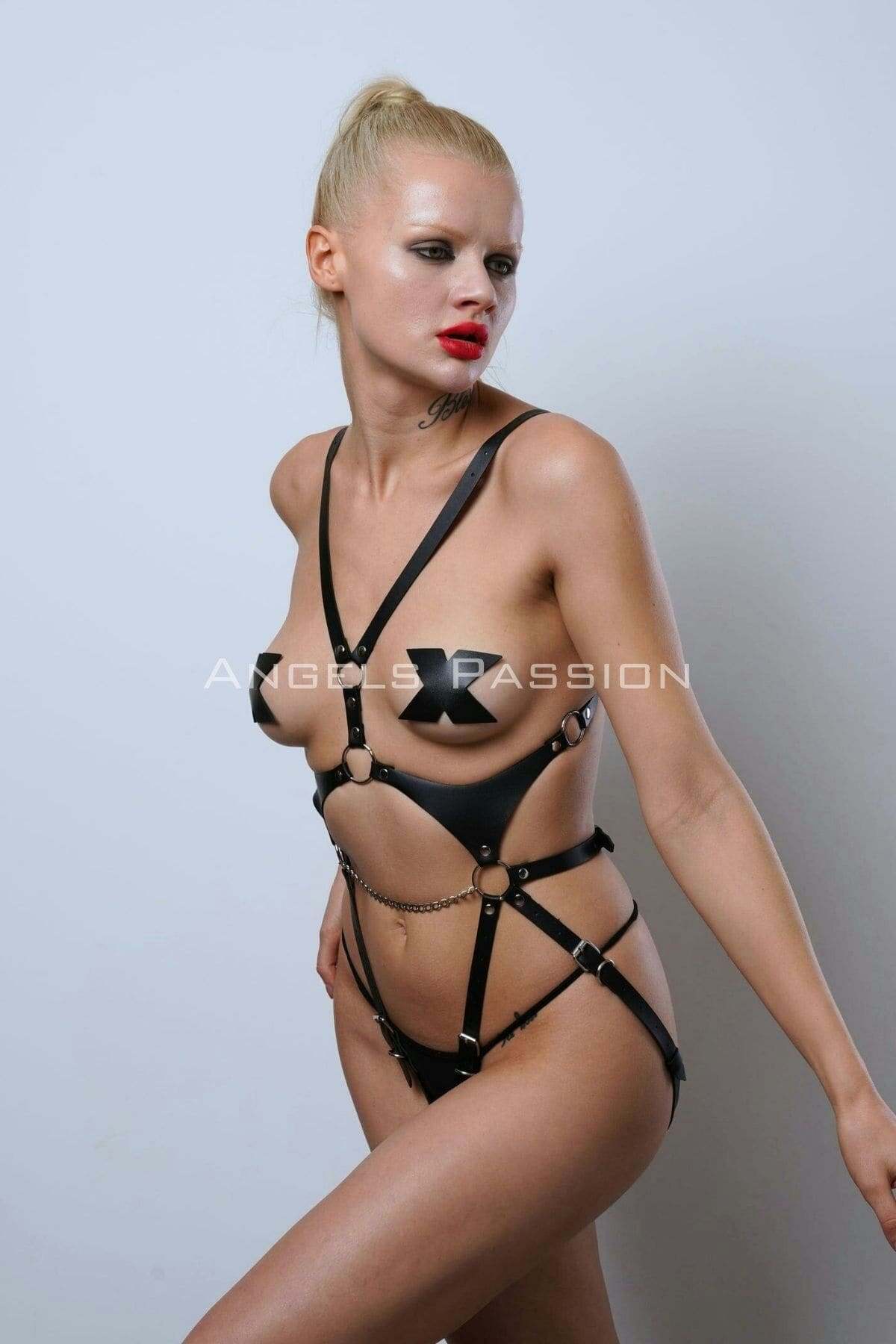 Crotchless Leather Body Harness, Leather Fantasy Wear, Clubwear