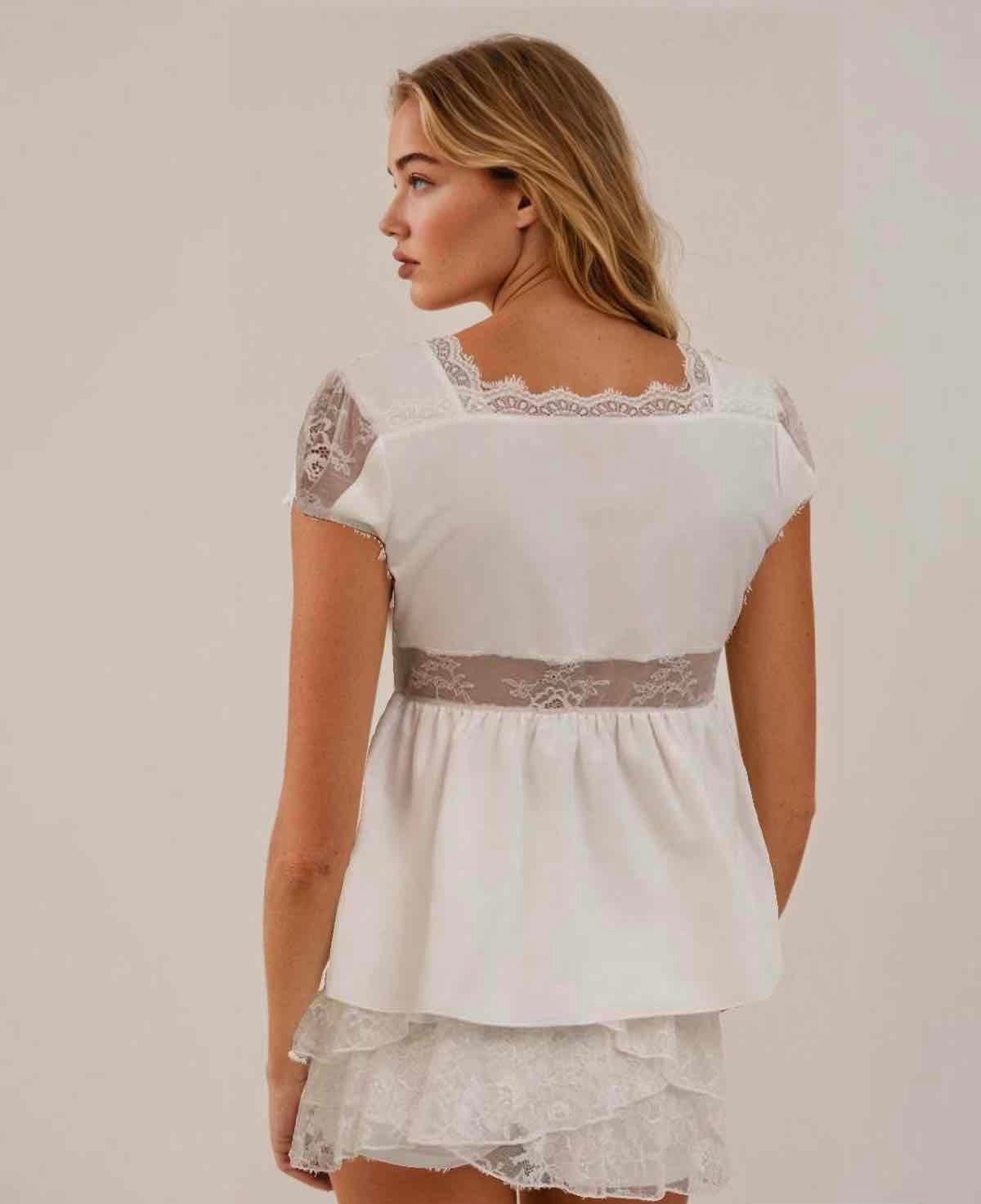 Add a touch of sweetness to your wardrobe with our Cutie Code Top! This charming white top features delicate lace accents, perfect for elevating any outfit. Get ready to turn heads and feel confident in this must-have addition to your collection. (Sorry, not available in boring.)