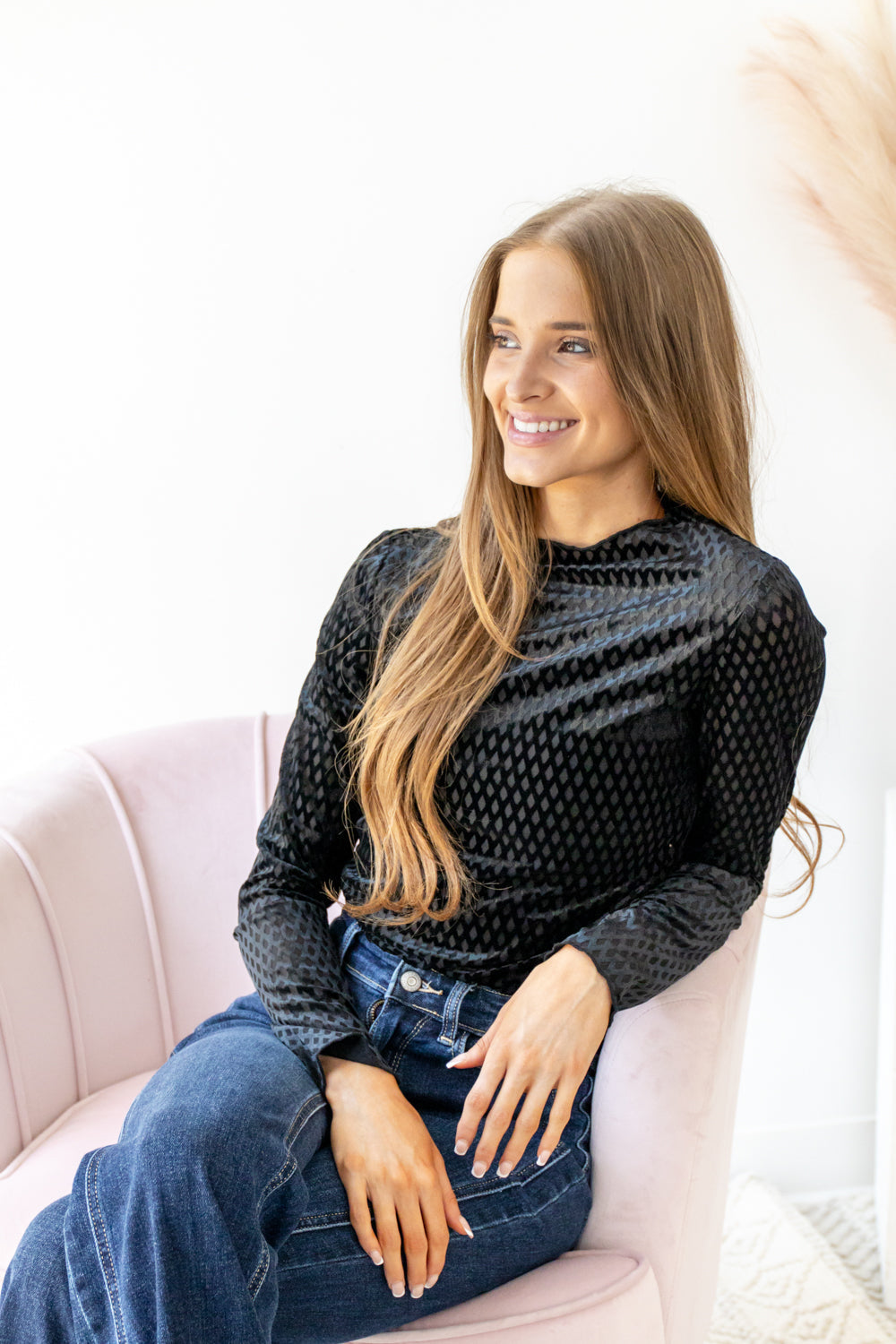 Whether you're aiming for a daring day look or a night out, the Diamond Daze Mesh Layering Top is your go-to choice for adding a touch of adventure to your wardrobe.