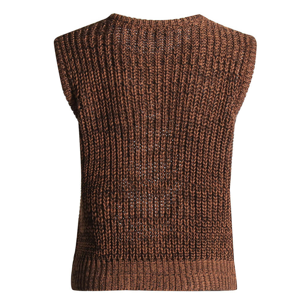 Draping Metallic Chain Distressed Front Marled Brioche Rib Knit Vest - Brown