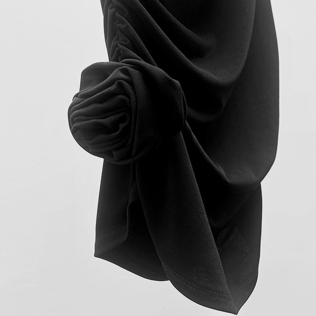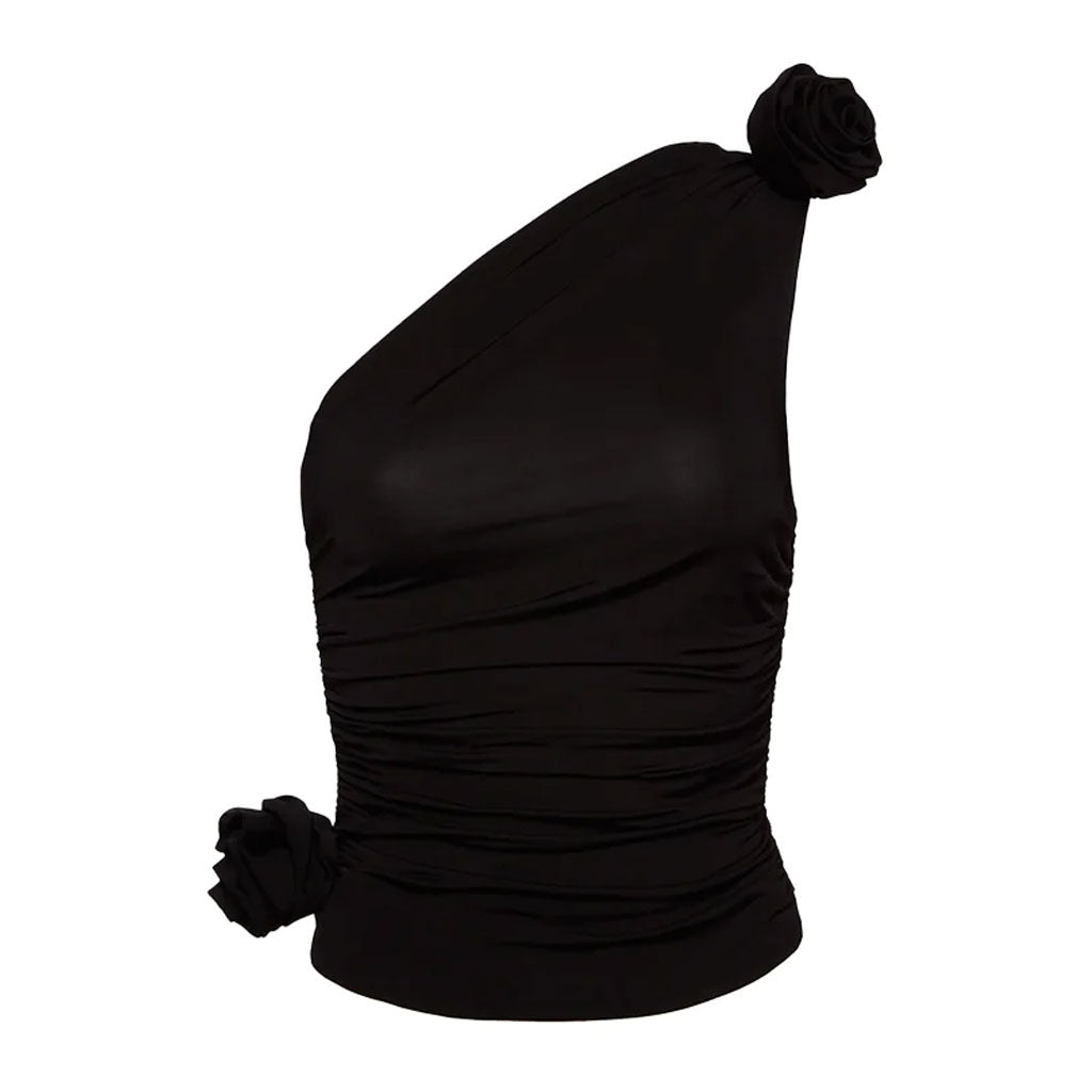 Elegant 3D Floral Rosette Detail One Shoulder Ruched Sleeveless Top