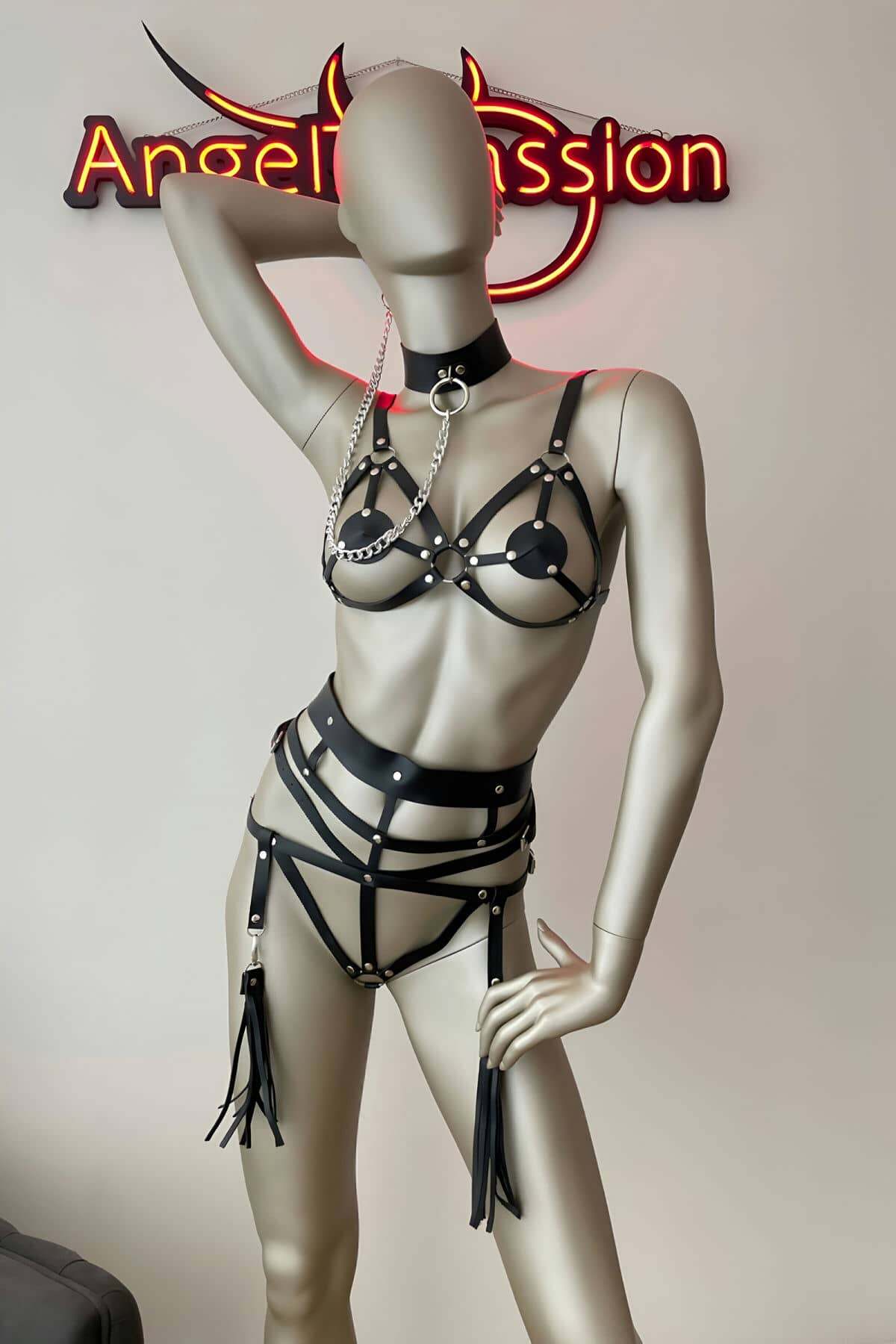 Erotic Underwear Fantasy Leather Tassel Harness