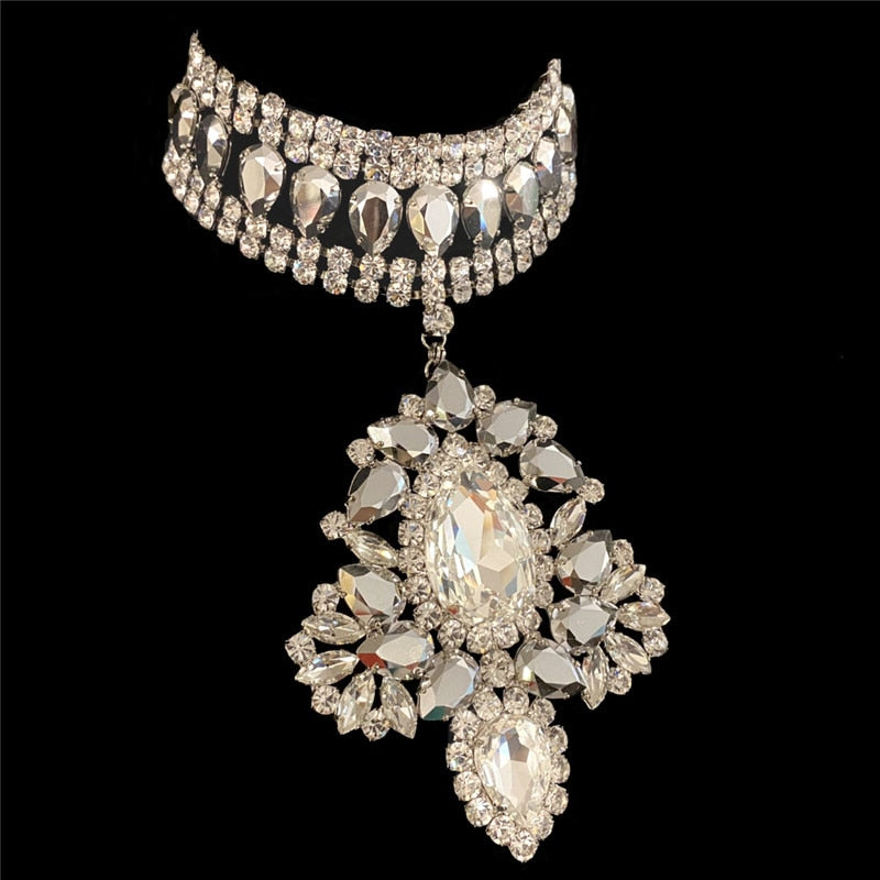 This beautiful necklace is a modern piece that is a perfect addition to any outfit. The sleek silver and rhinestones are the perfect addition to your jewelry collection.