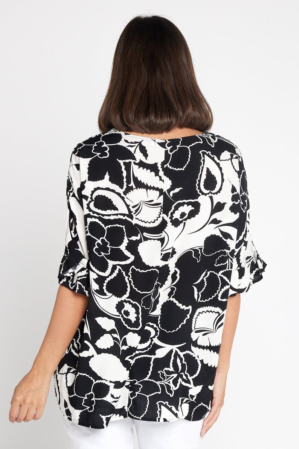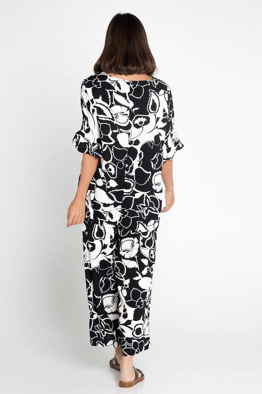 Elevate your wardrobe with this eye-catching top! The ruffled sleeves add a touch of femininity and movement, perfect for pairing with neutral pants or your favourite jeans. Embrace effortless style with a top that’s as bold as it is comfortable.