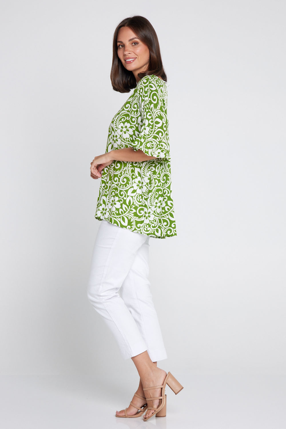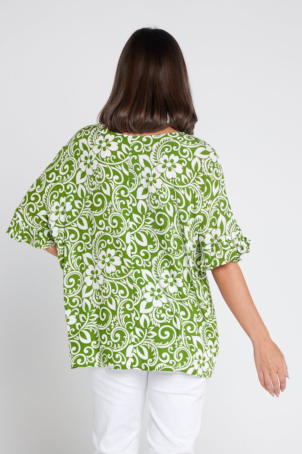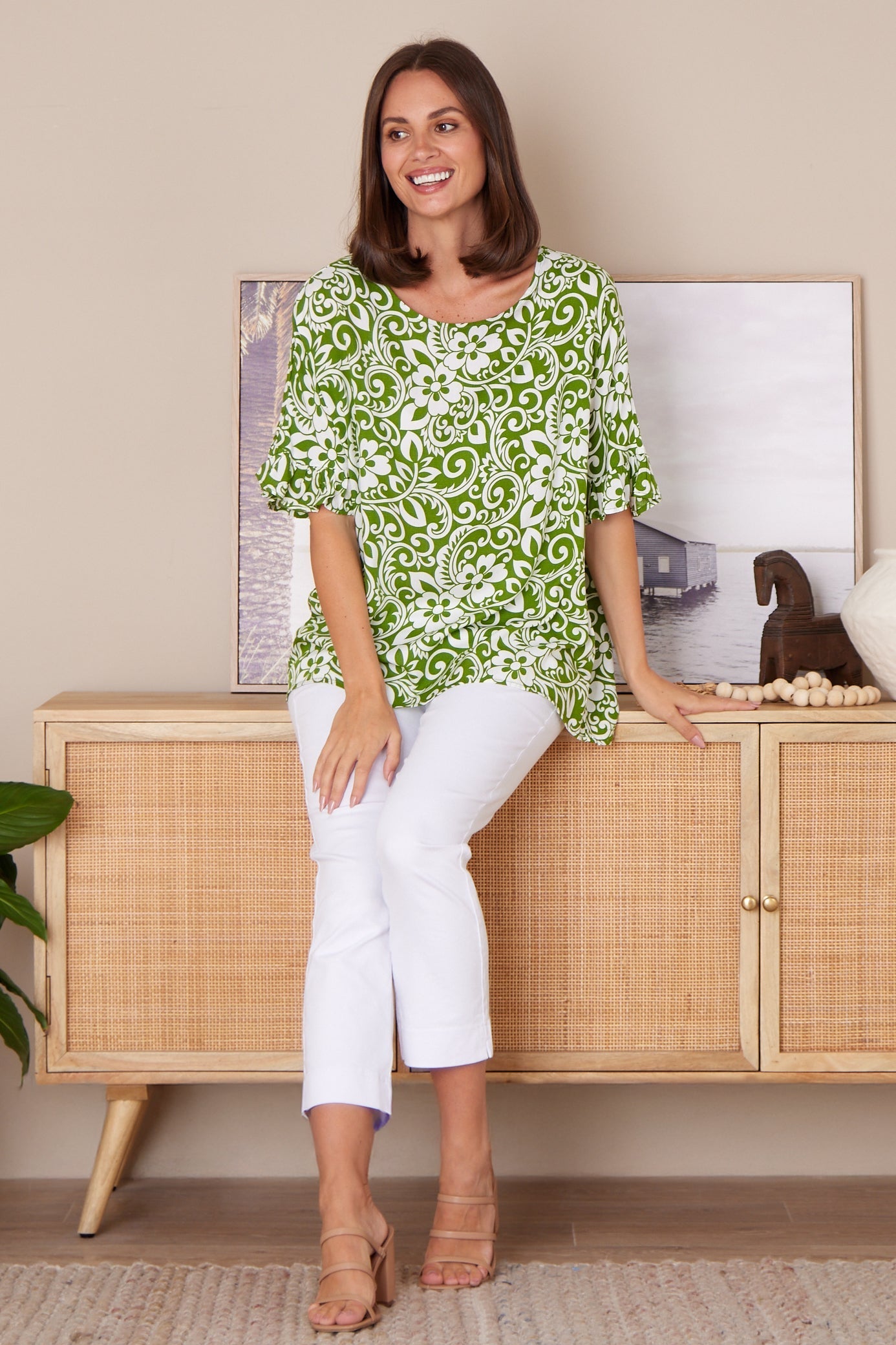 Elevate your wardrobe with this eye-catching top! The ruffled sleeves add a touch of femininity and movement, perfect for pairing with neutral pants or your favourite jeans. Embrace effortless style with a top that’s as bold as it is comfortable.