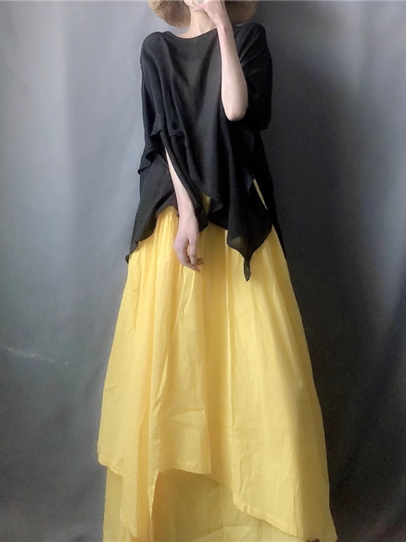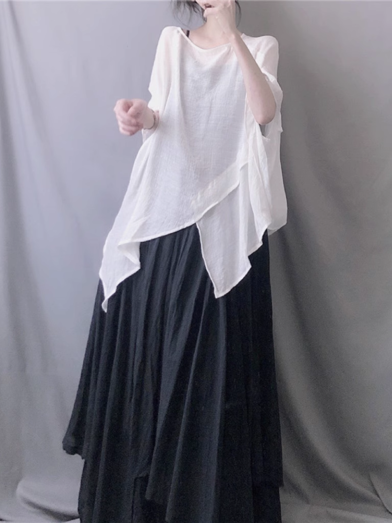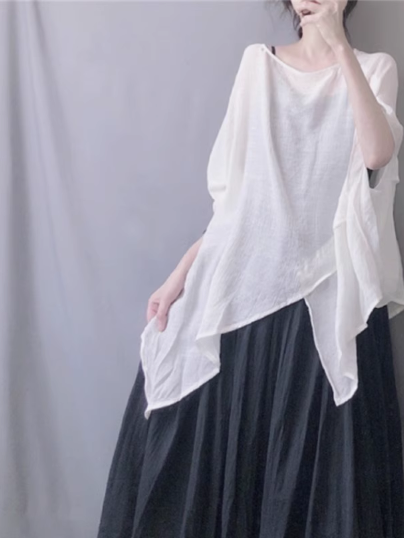 Stay cool and stylish this summer with our Women's Summer Large Size Tops. Made from blended cotton. these tops offer a comfortable and breathable fit. The round neck collar and bat sleeves add a touch of casual elegance to the loose-fitting design. Featuring a plain pattern in classic Black and White. these tops are versatile and easy to pair with any bottoms. Available in one size. with a bust measurement of 175cm and a length ranging from 57cm to 77cm. these tops offer a relaxed and flattering silhouette for all body types. Embrace the warmth of the season with these trendy and comfortable tops.
