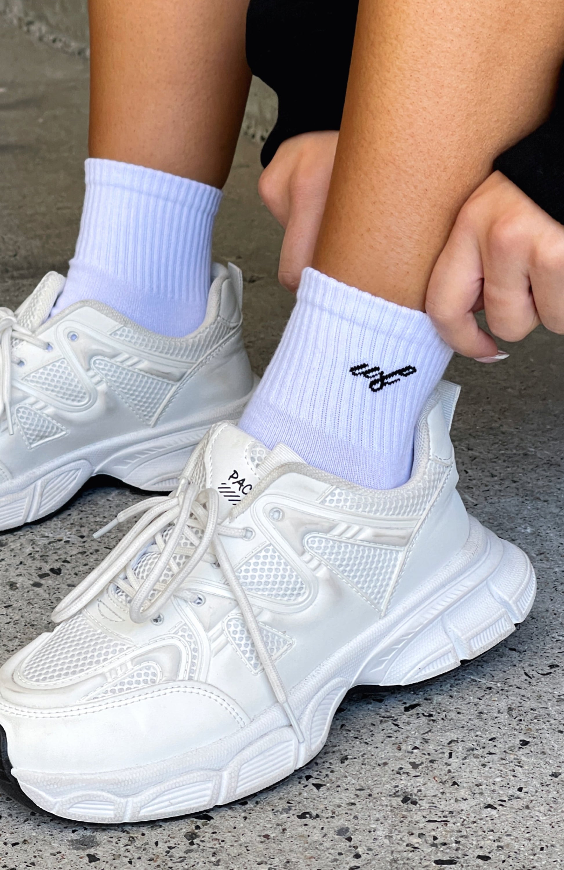 The Foolish Game Socks White/Black are essential to complete your outfit! These cushioned crew socks feature embroidered White Fox Logo and ribbed ankle cuffs and arch band. We love this paired with one of our lounge sets to complete your off-duty look.