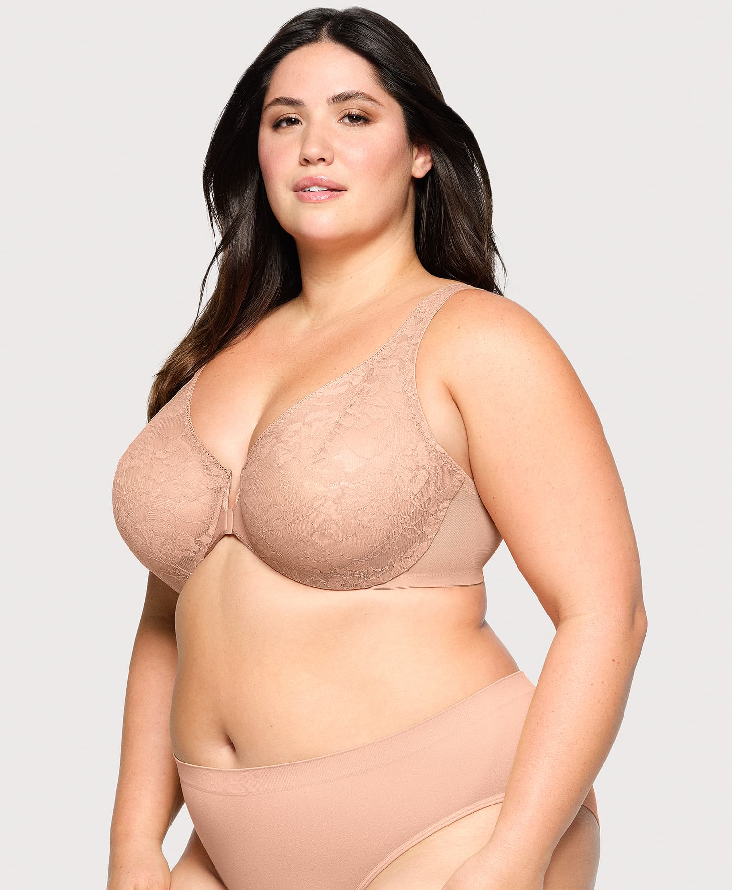 Front-Closure Lacey T-Back WonderWire Bra Cappuccino