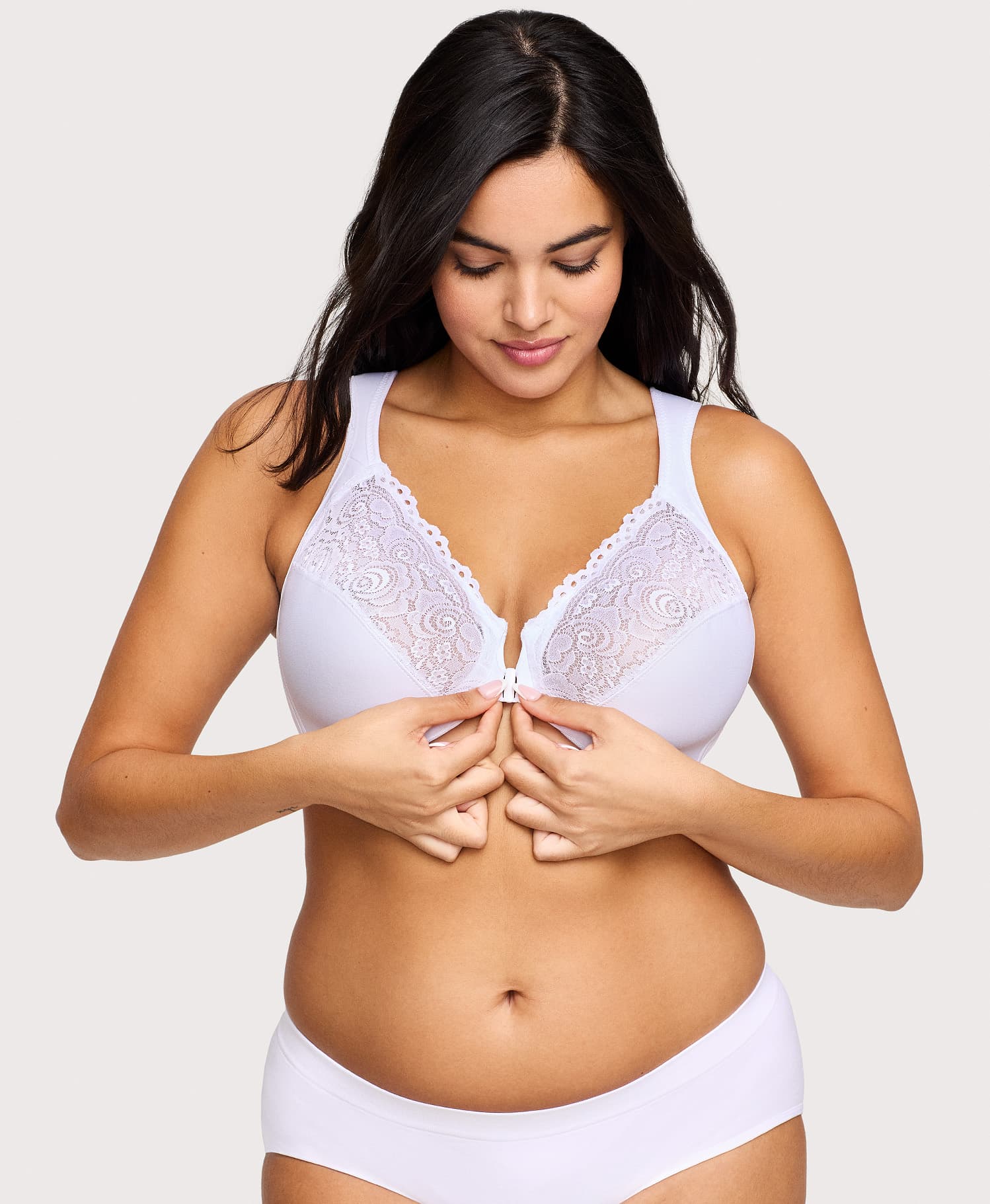 At the intersection of convenience and comfort is this plus-size bra. The secure front clasp goes on and off in a pinch while the cushioned wire never gets close enough to pinch back.