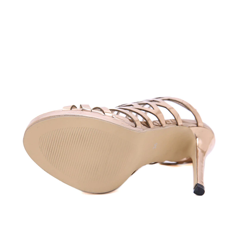 Solid Metallic PU Leather Ankle Gladiator Heeled Sandal