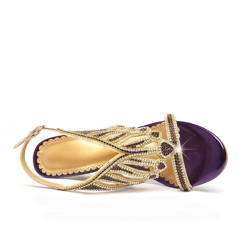 Genuine Leather Crystal Decorations Heeled Sandal Square Heels