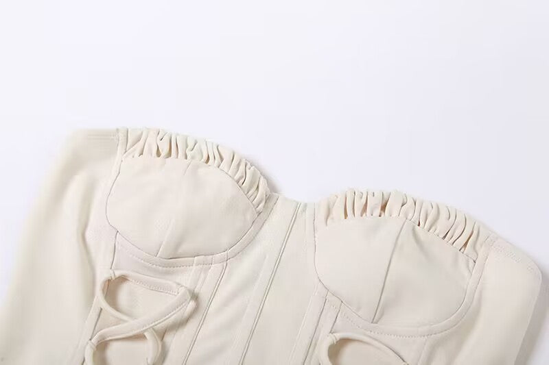 Glitter Lace Up Satin Sweetheart Sleeveless Tube Crop Corset Top