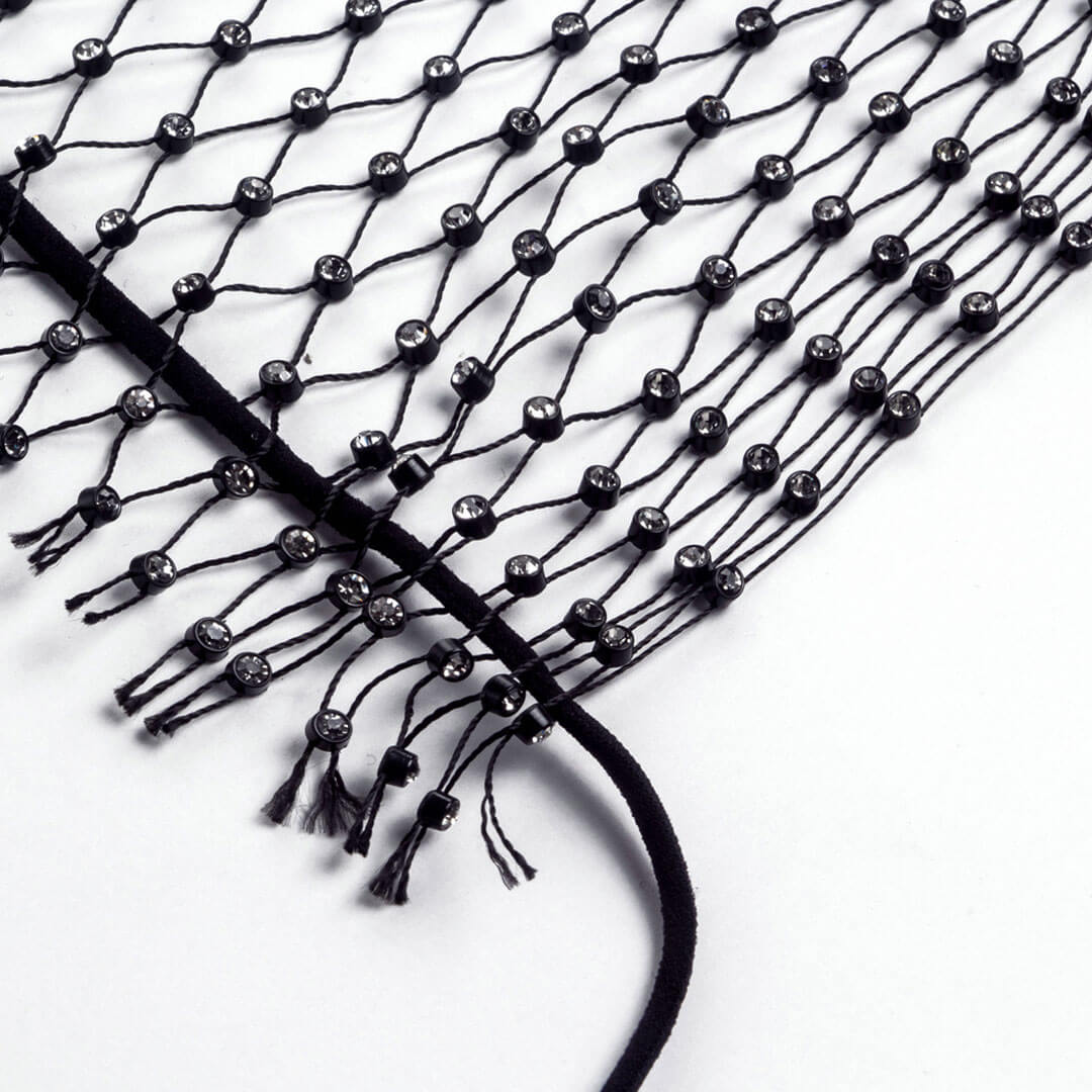 Glittering Rhinestone Embellished Fishnet Backless Halter Crop Top - Black